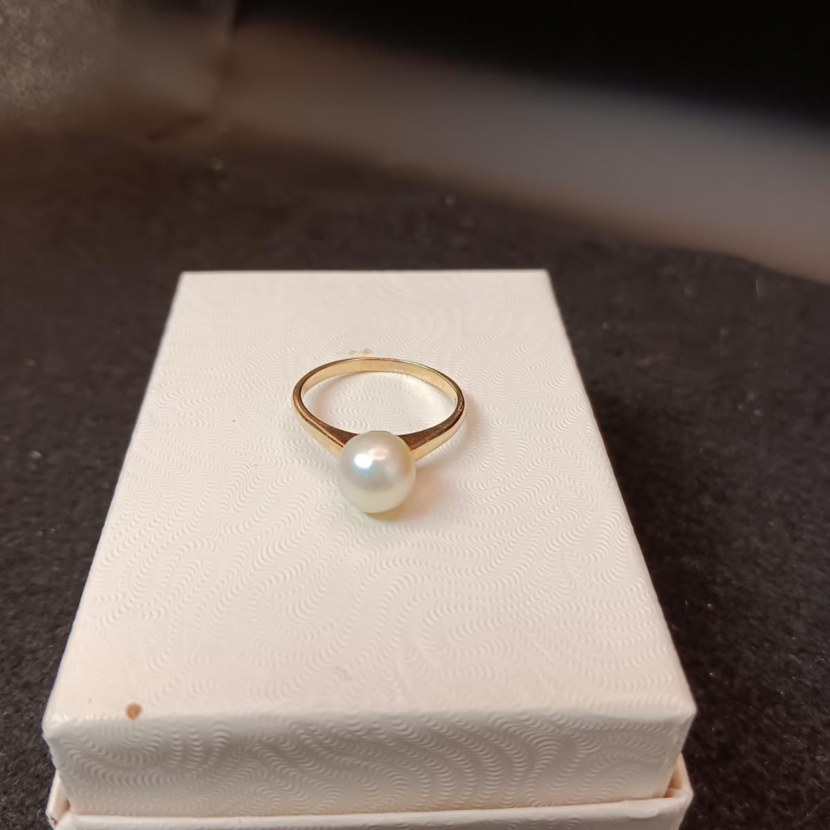 14K GOLD RING WITH A GENUINE PEARL SIZE 8