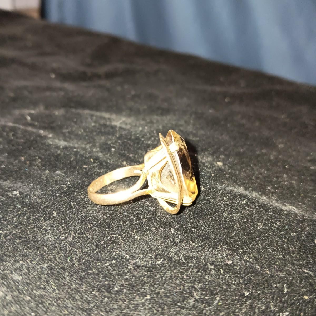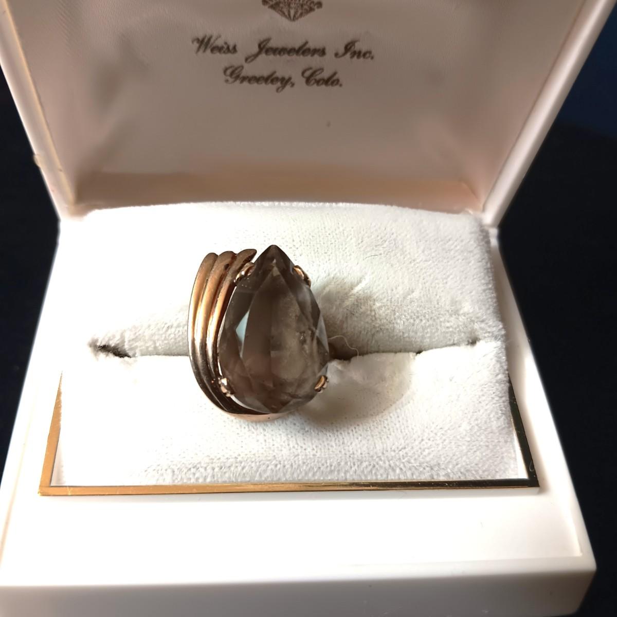 14K GOLD RING WITH A SMOKEY QUARTZ STONE 7.33g SIZE 4 1/2
