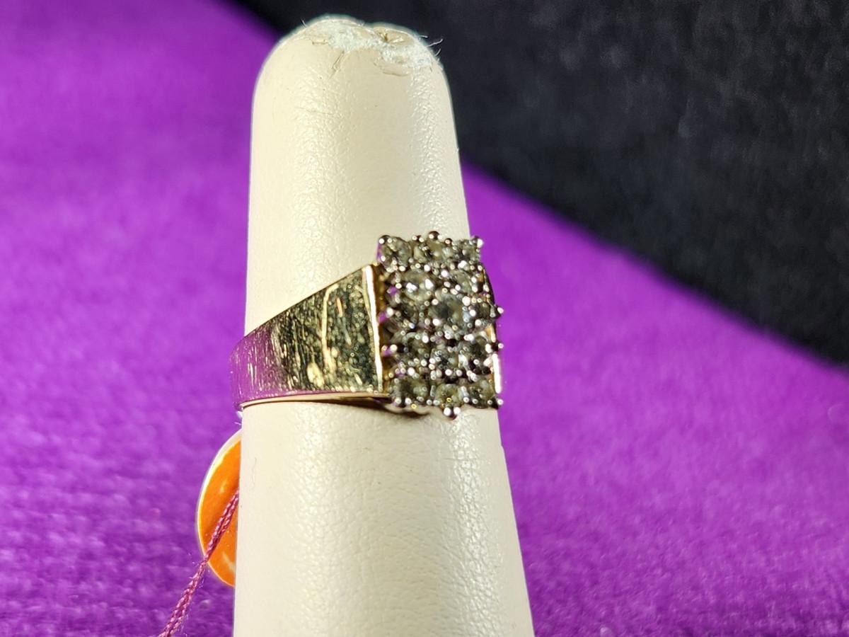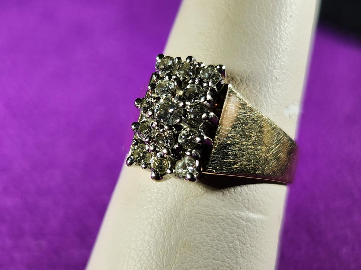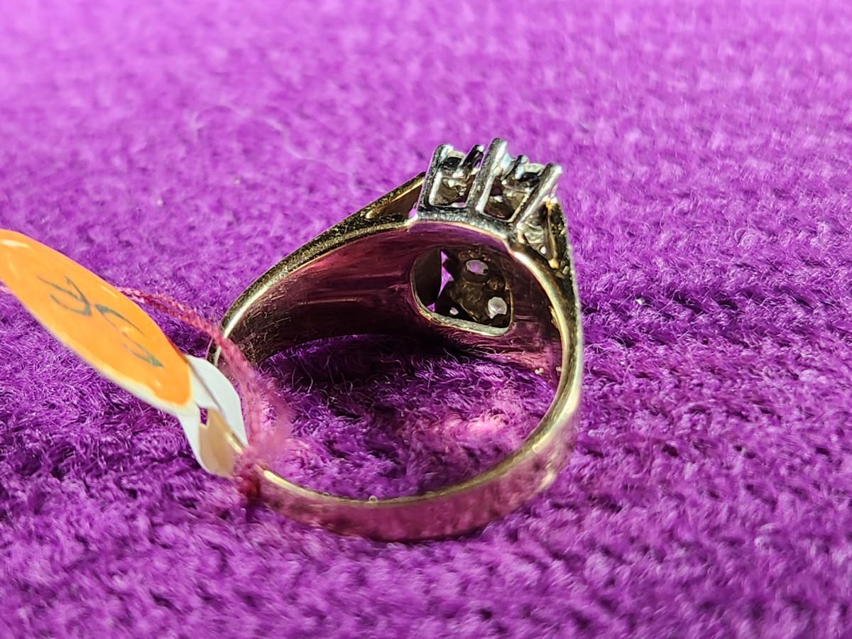 This auction lot is for a 14K Gold Ring with Diamonds. The ring weighs about .170ozt with diamonds. Gems have tested as diamonds but have not been graded. The ring is a size 6.5 and is marked as 14K.