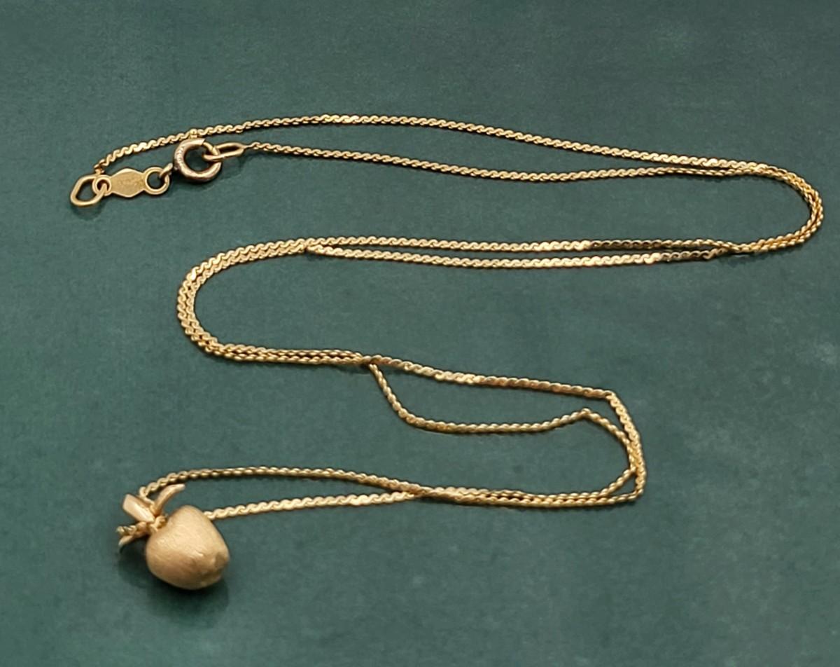 Vintage 14k Gold Small Apple Pendant Necklace