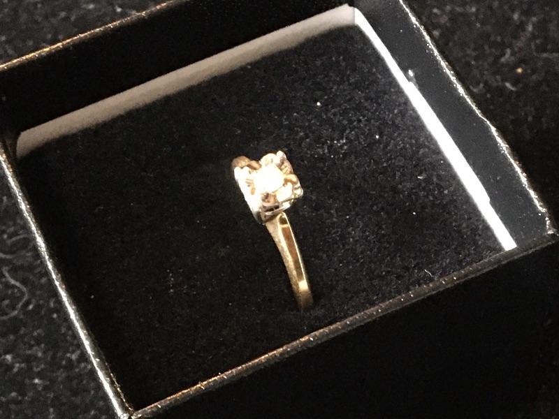 Very good overall condition. Diamond is about .10 carats. Please see pictures for details. Packaging and shipping services available. Please contact us, if you need a shipping quote, before bidding.