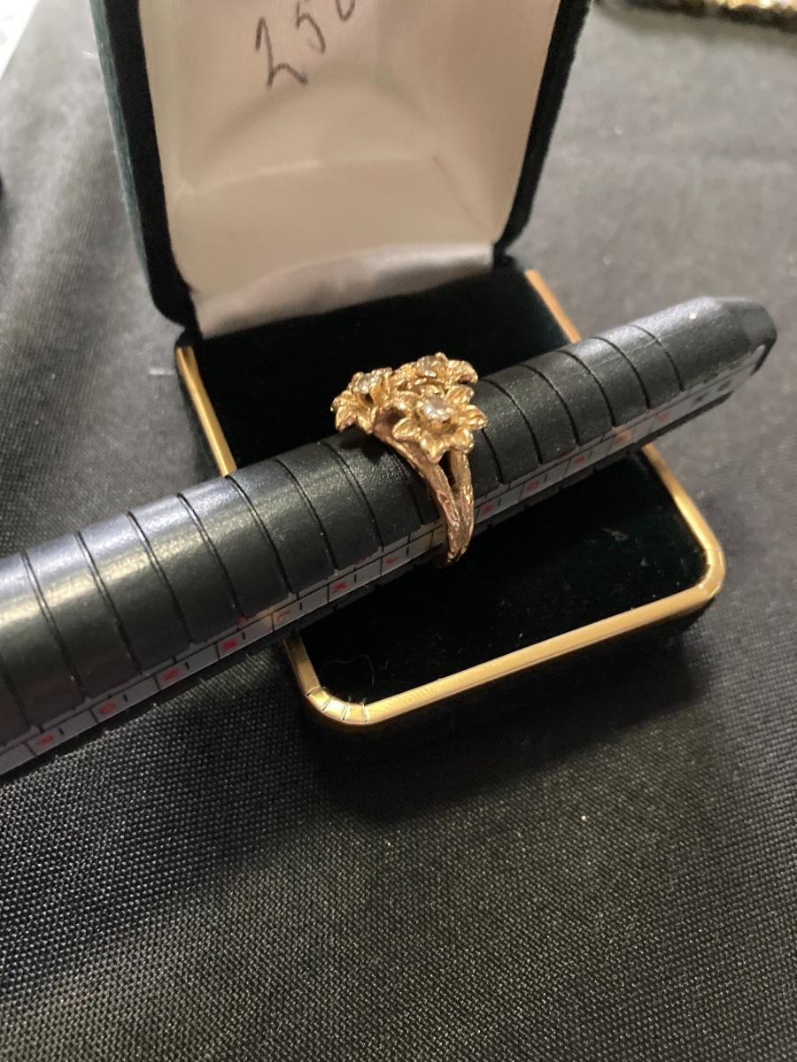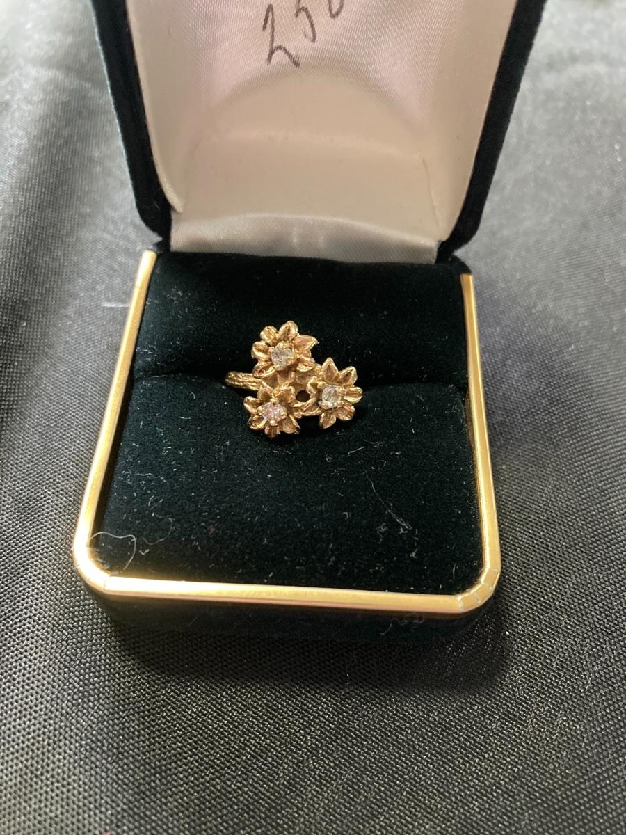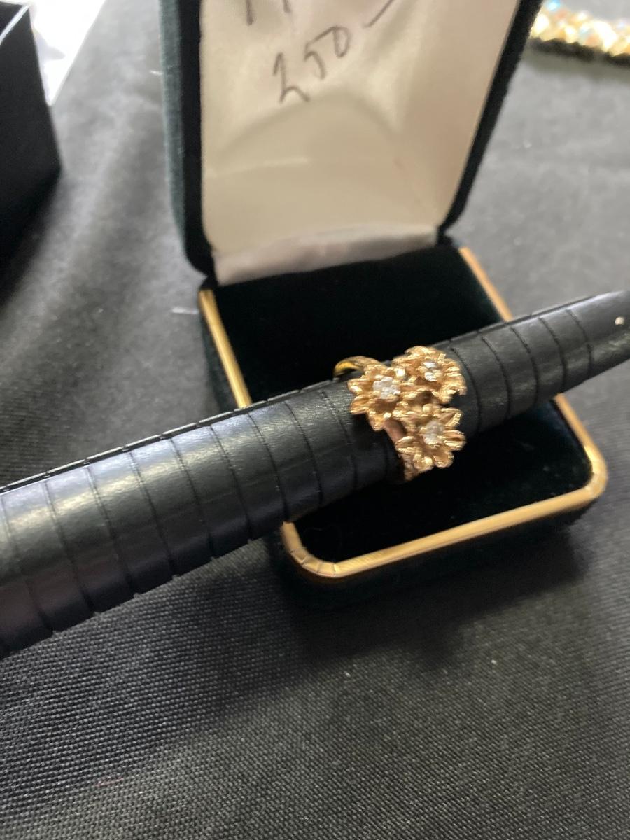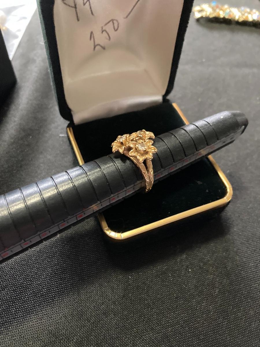 14k Gold Sunflower and Diamond Ring Size 4.5