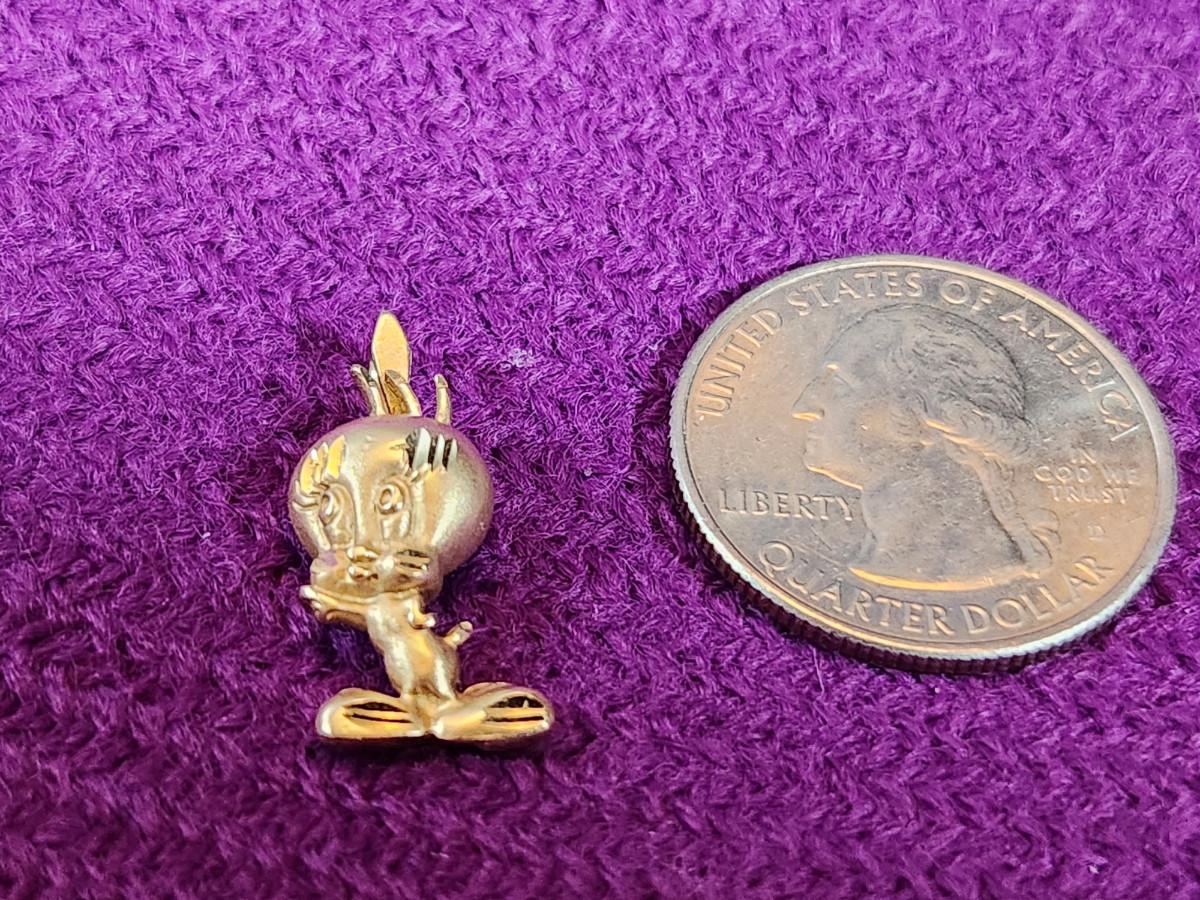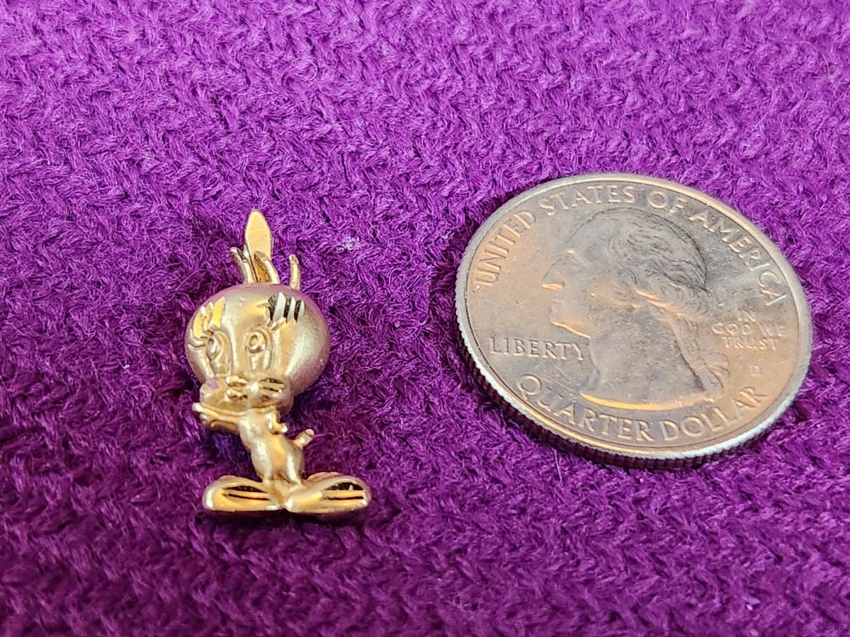 This auction lot is for a 14K Gold Tweety=Bird Pendant. Nice charm - for necklace or bracelet. Well-executed. Weighs about .067ozt. Nice for the collector in your life.