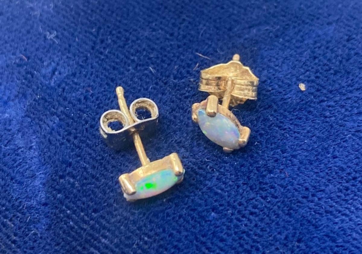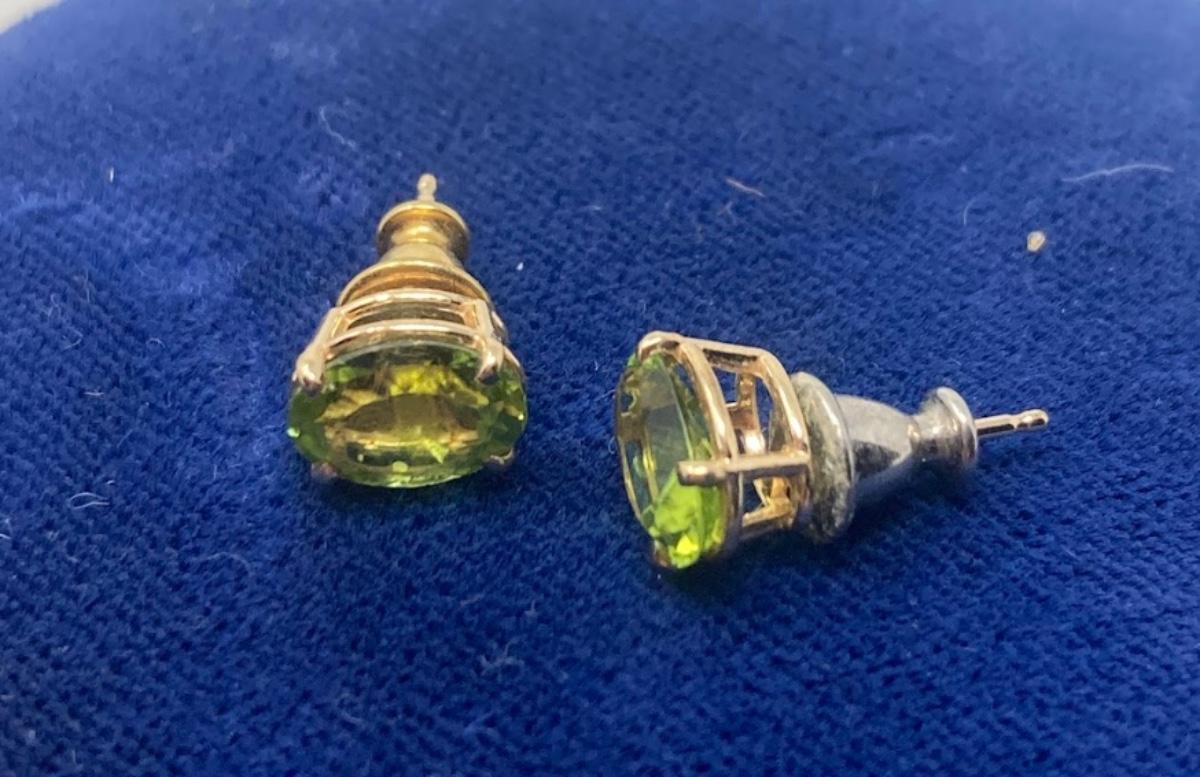 Pair of Peridot and pair of Opal 14K Gold Post Earrings