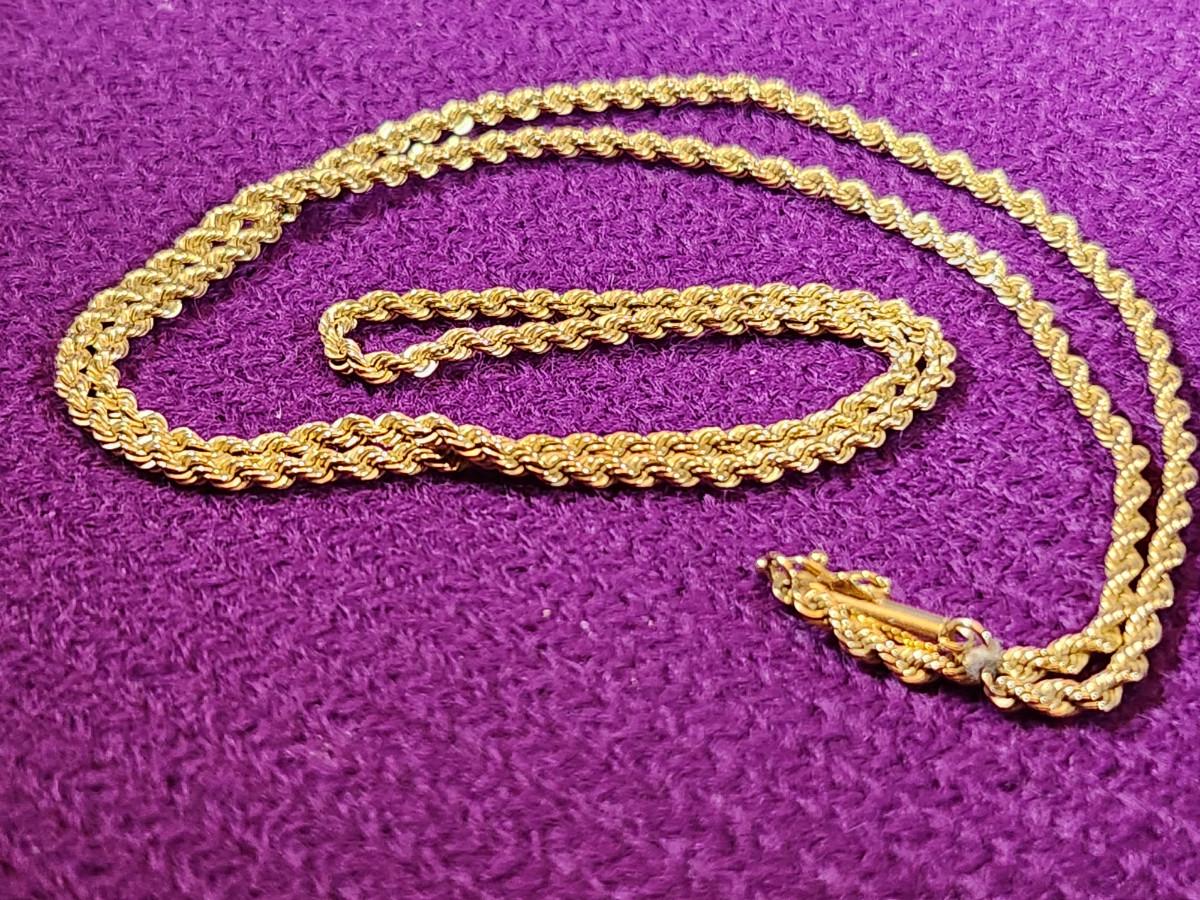 This auction lot is a for a 14K Gold Woven 20-Inch Necklace. The necklace is marked 14K and weighs about .292ozt. Very handsome chain.