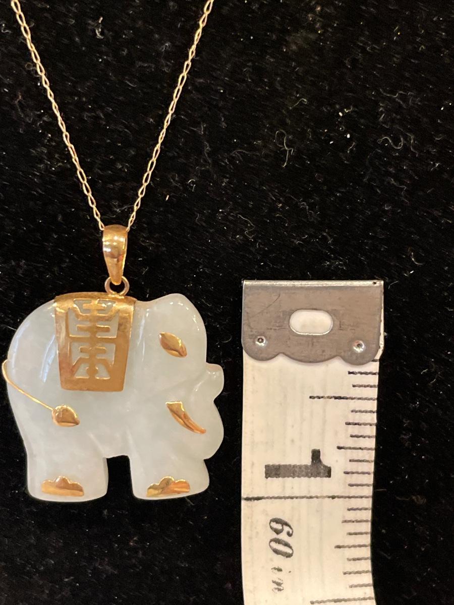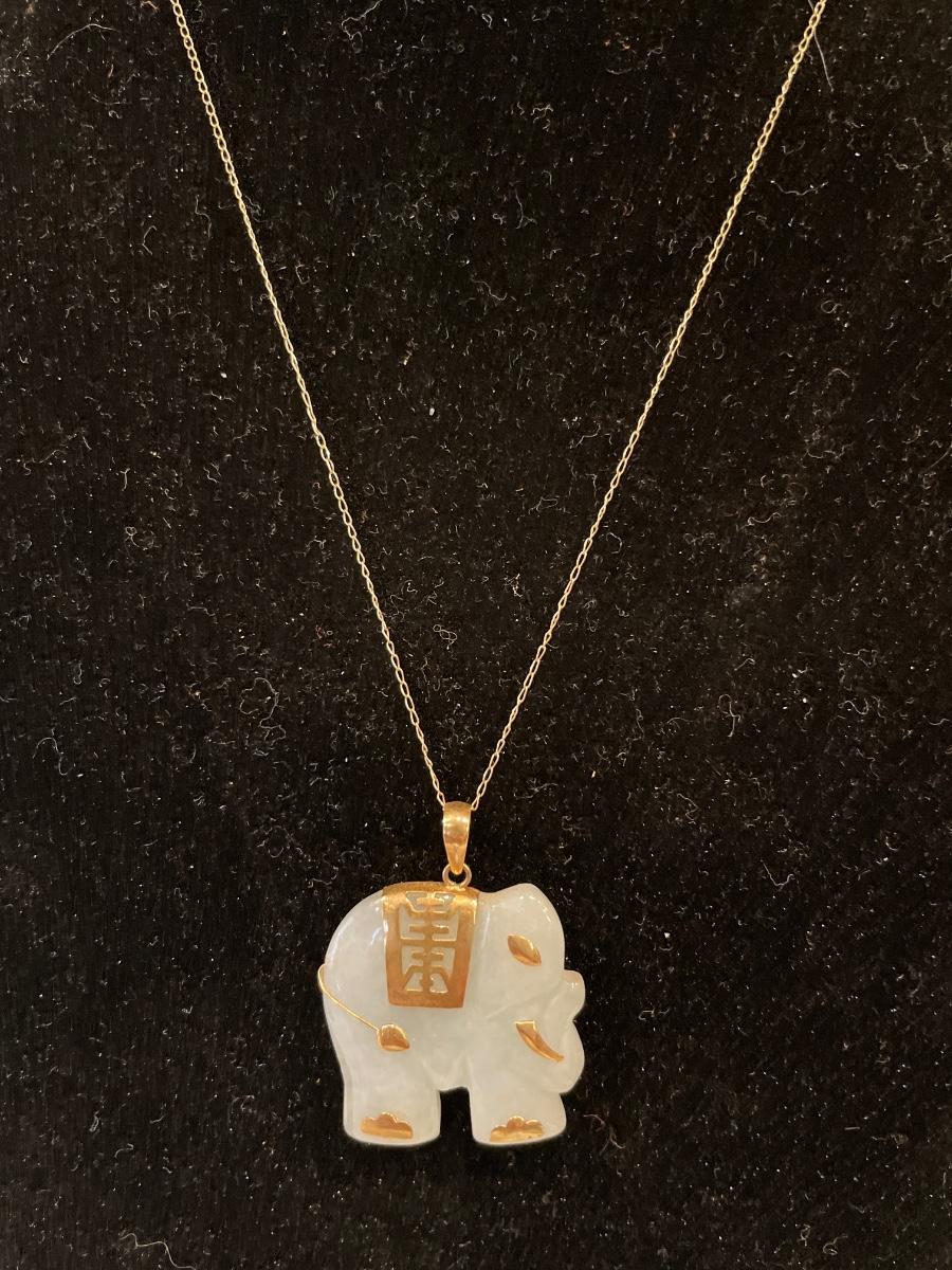 14k necklace and pendant with white jade elephant