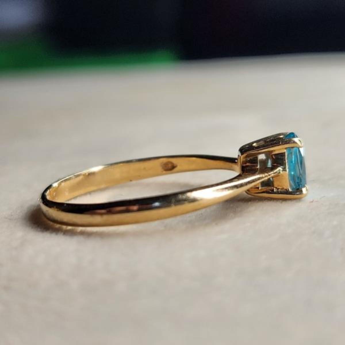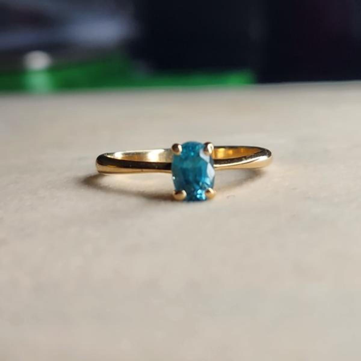 14k Neon Blue Natural Oval Stone Ring Size 6.5