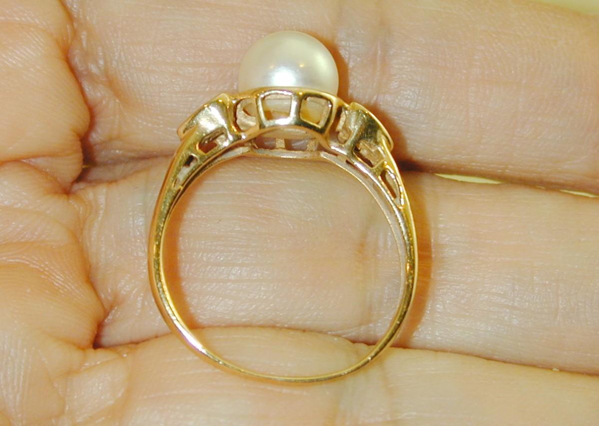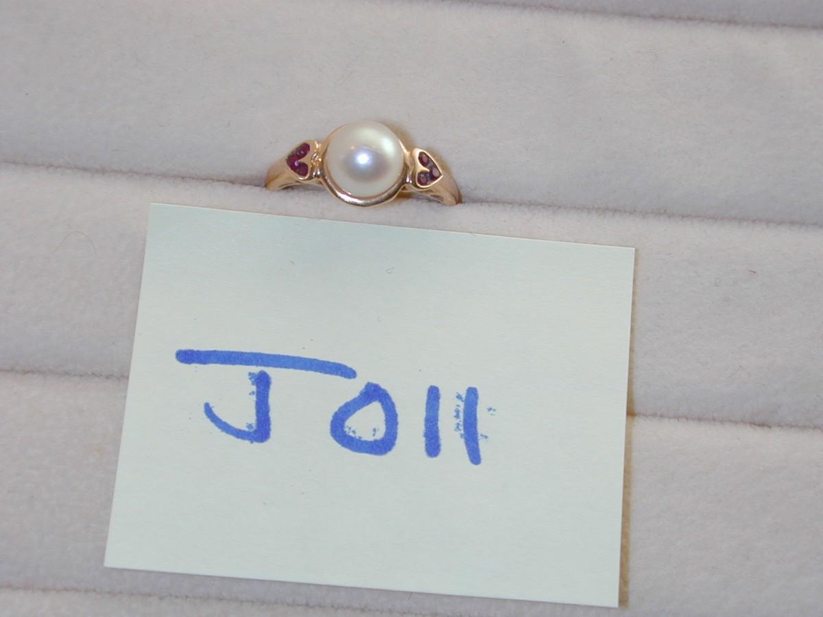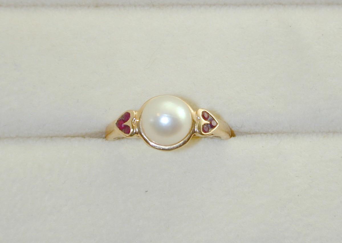 14k pearl rings with rubies Hearts Size 8.5, 2.7 Grams - J011