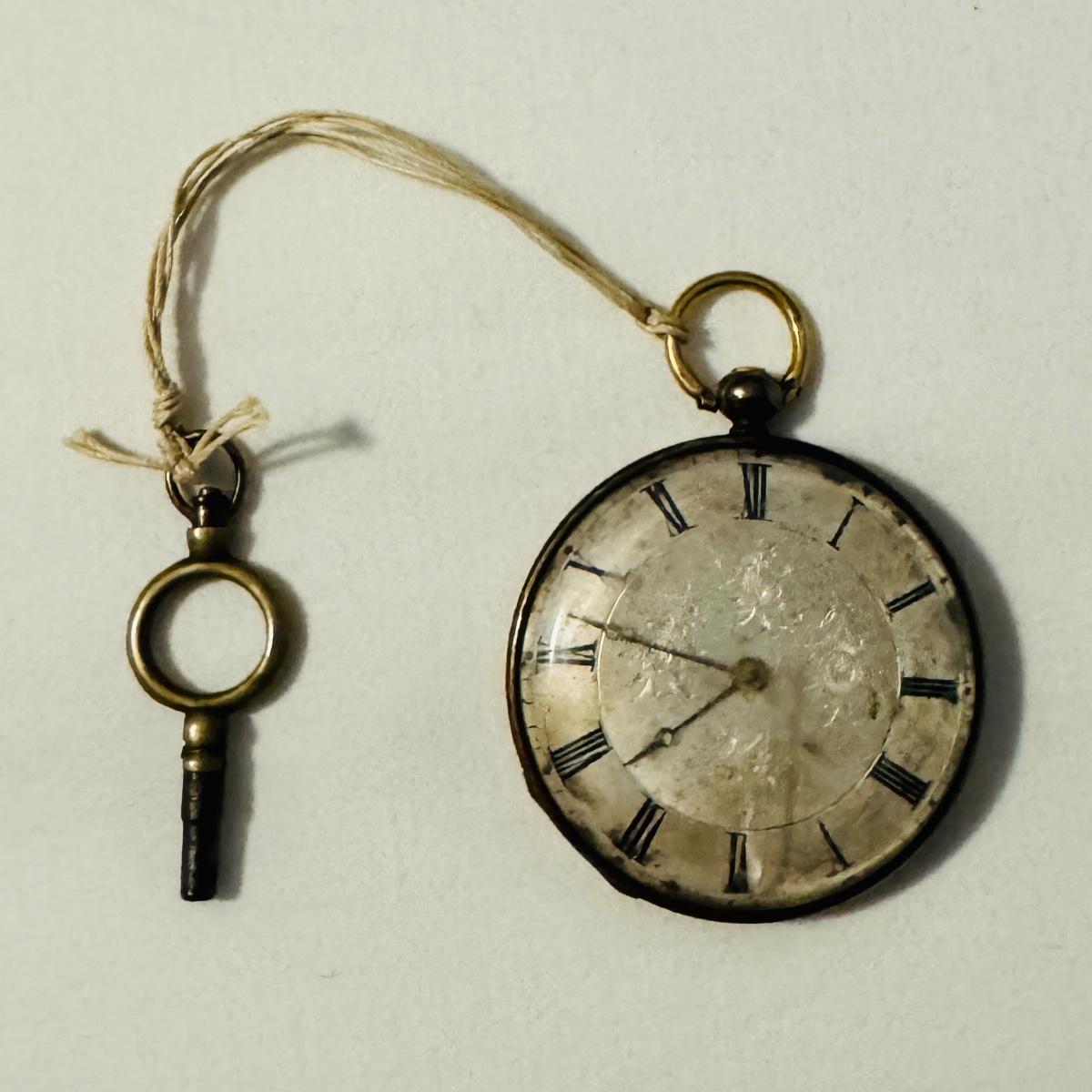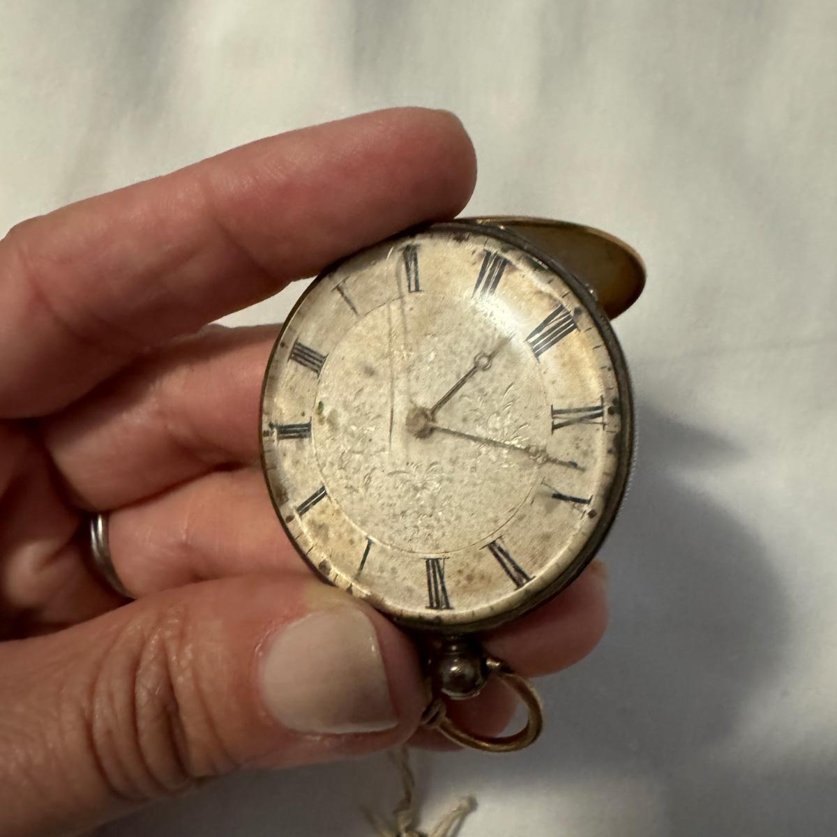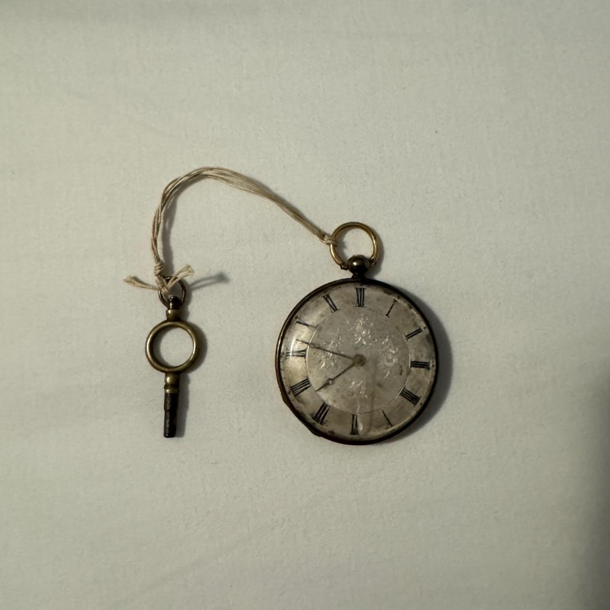 Lovely old pocket watch with 14K case. Watch comes with a small winding key that fits the dial. The glass has markings on it so it isn’t super clear glass and edges of watch are a bit worn. See photos for sizing. It’s a bit smaller than your typical pocket watch. See close ups for serial number and engravings. They are a bit tough to read. Comes with a glass dome for display. This item gold was tested by a local jeweler since it doesn’t have 14k marking, but we do not guarantee results.. We recommend coming to preview and testing yourself to be sure. Shipping available
