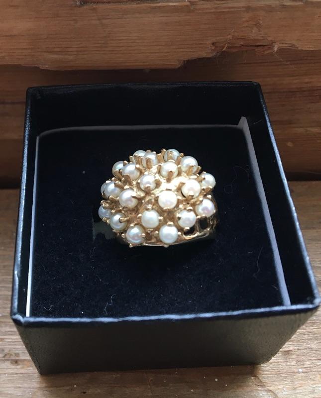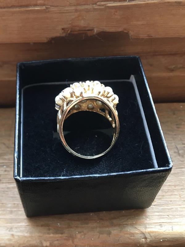 Excellent condition. Approx 21 pearls of varying sizes. I believe these are natural pearls. 14k yellow gold. Weight is 6 grams.