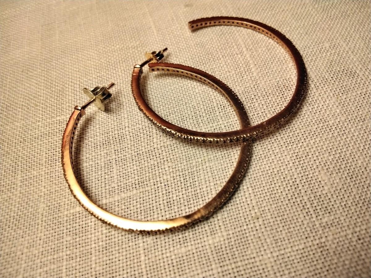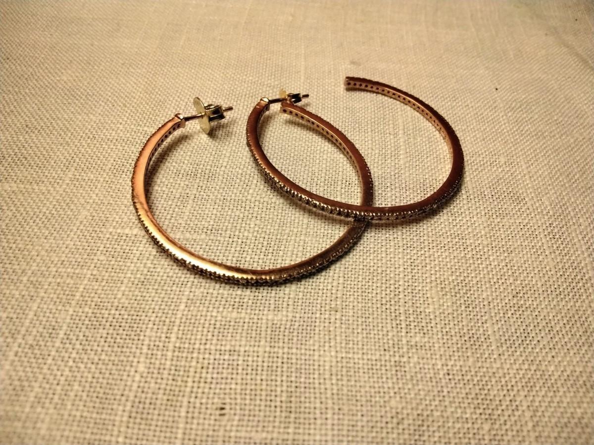 14k Rose Gold Diamond Hoop Earrings 14k/925
