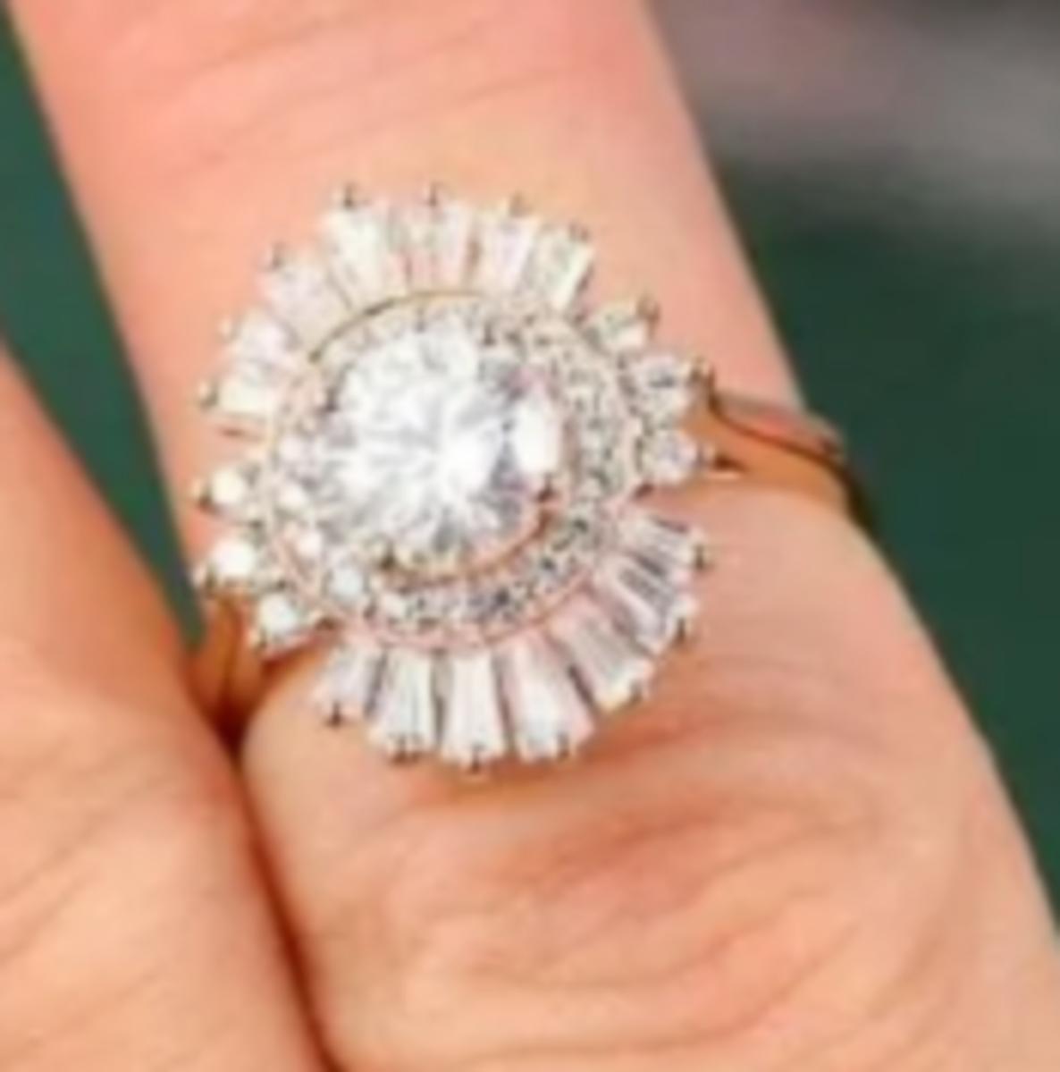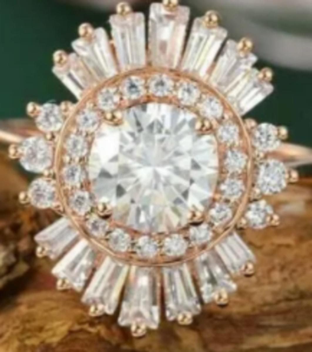 14k Rose Gold Round Cut Moissanite Starburst Ring