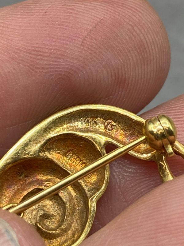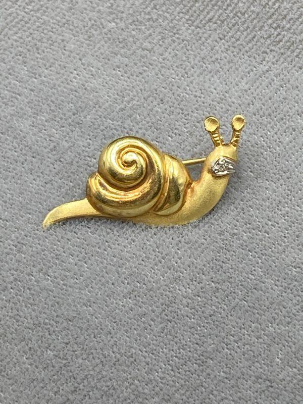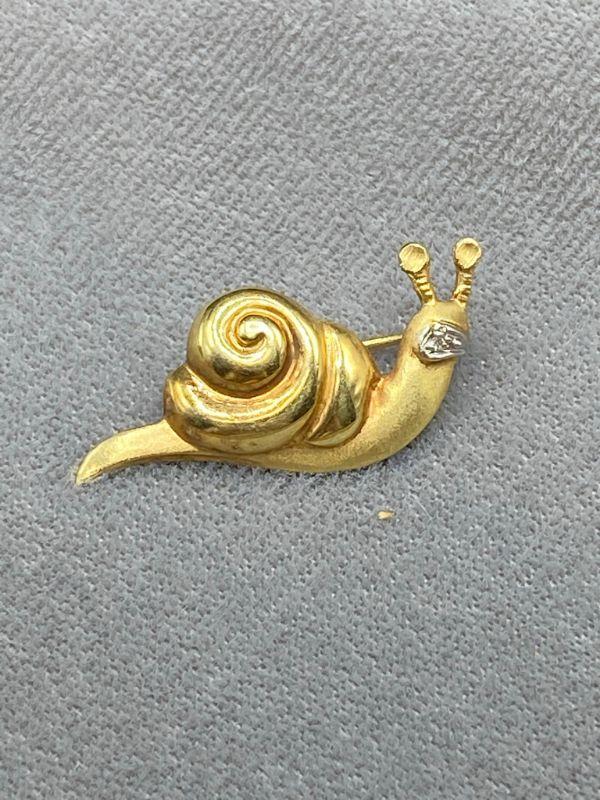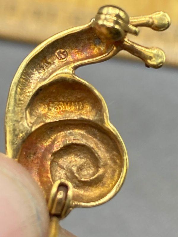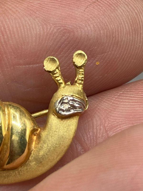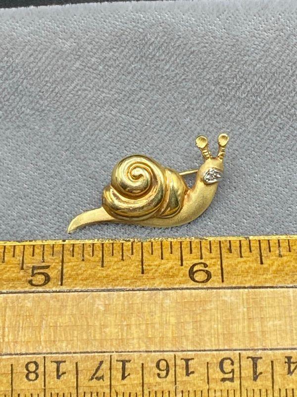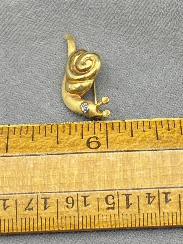 14k yellow gold snail pin. Signed and stamped on the back. About 1" in size. 3.1g t.w.