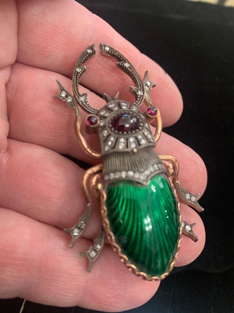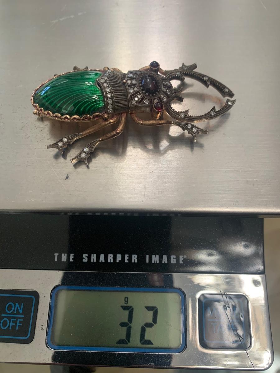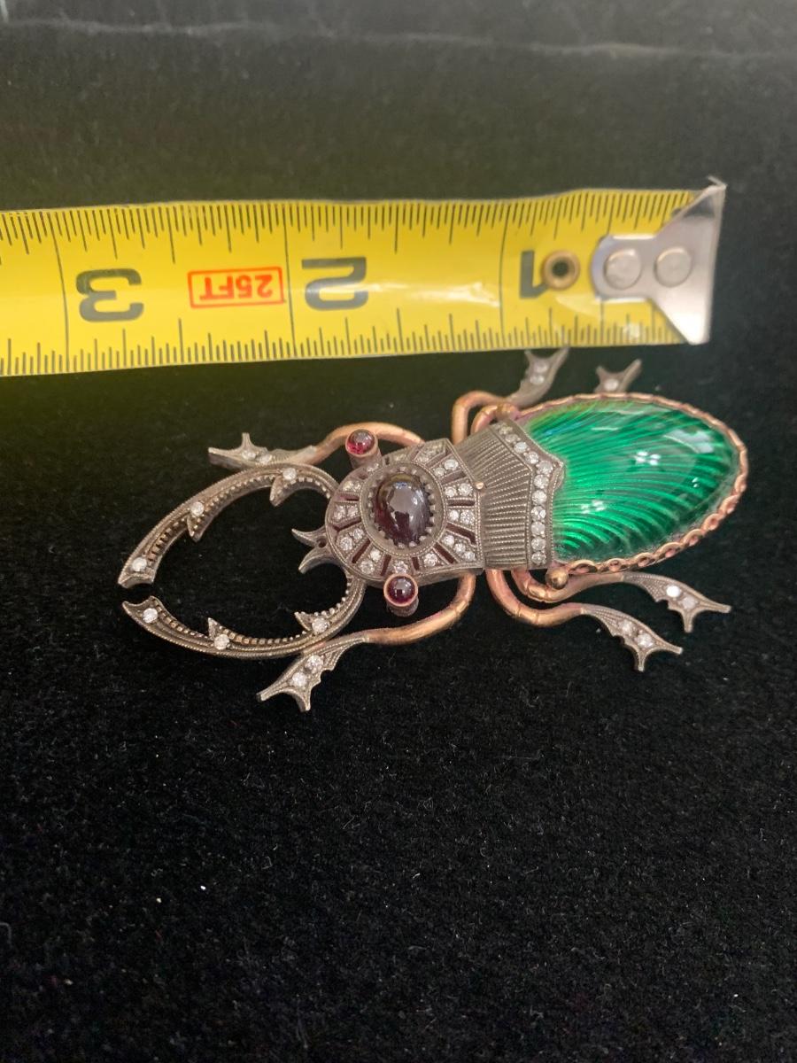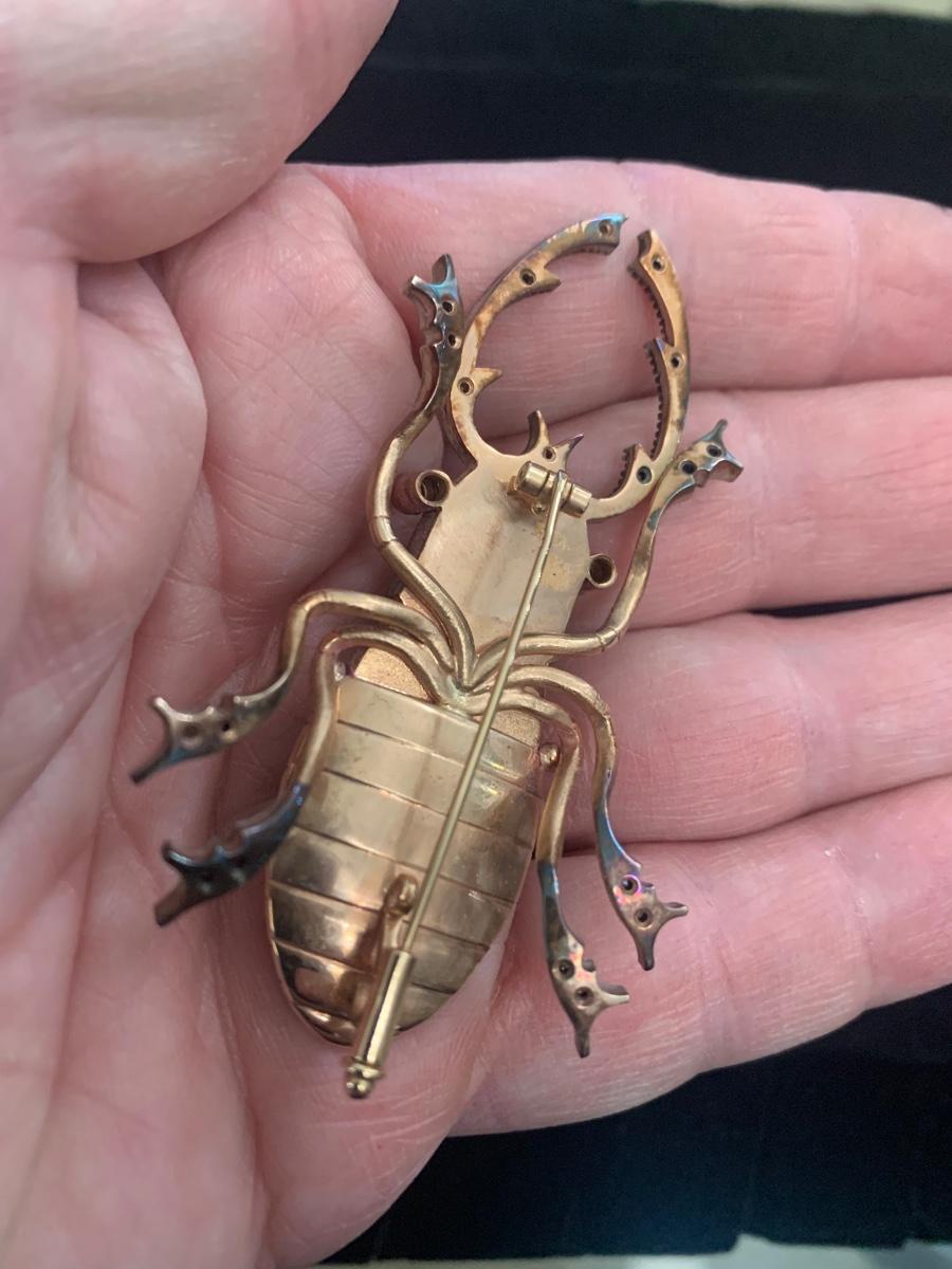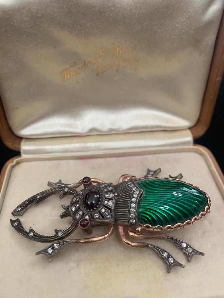 14k Theodore Starr Jewelers NY Stag Beetle Brooch In Original Case