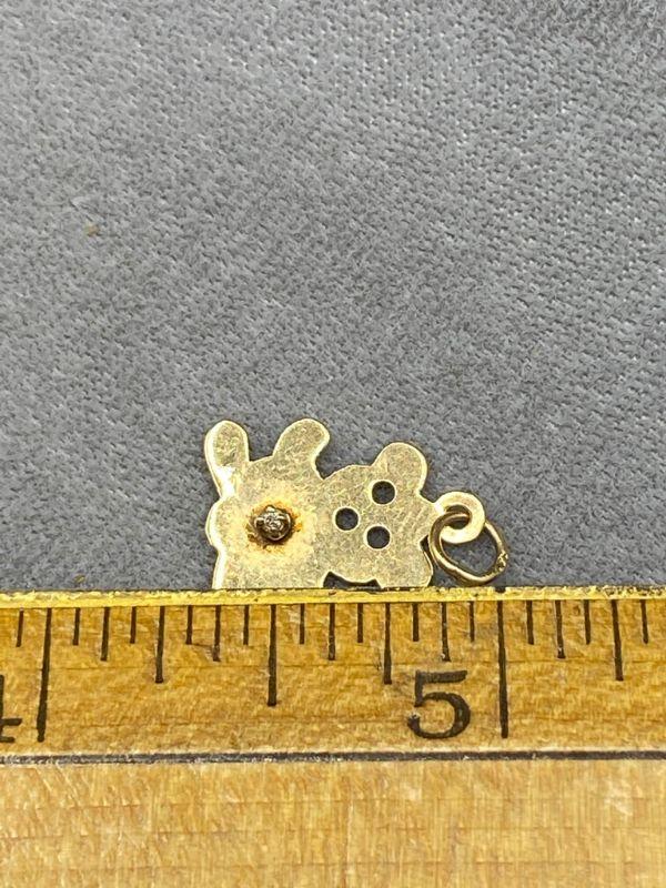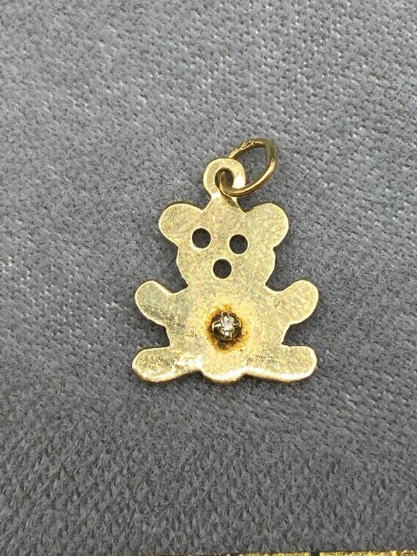 Vintage 14k bear pendant. Has a small stone in the center. Stamped 14k on the back. There is discoloration at the weld spot for the stone, not sure how clean it will come. Under 3/4" size.