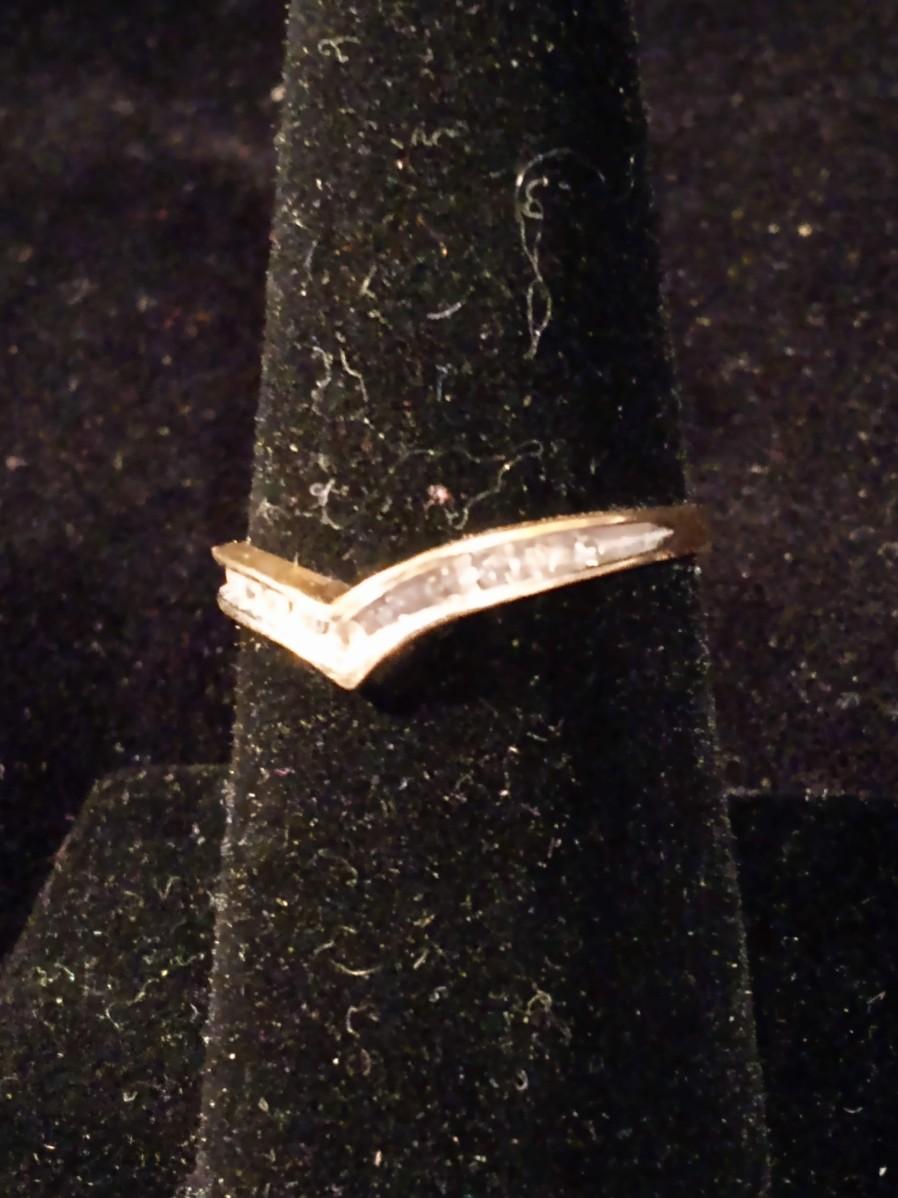 14k WEDDING BAND WITH DIAMONDS SIZE 7, WEIGHT 1.74g