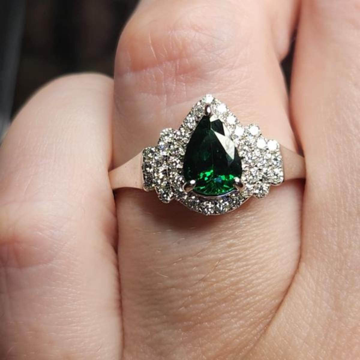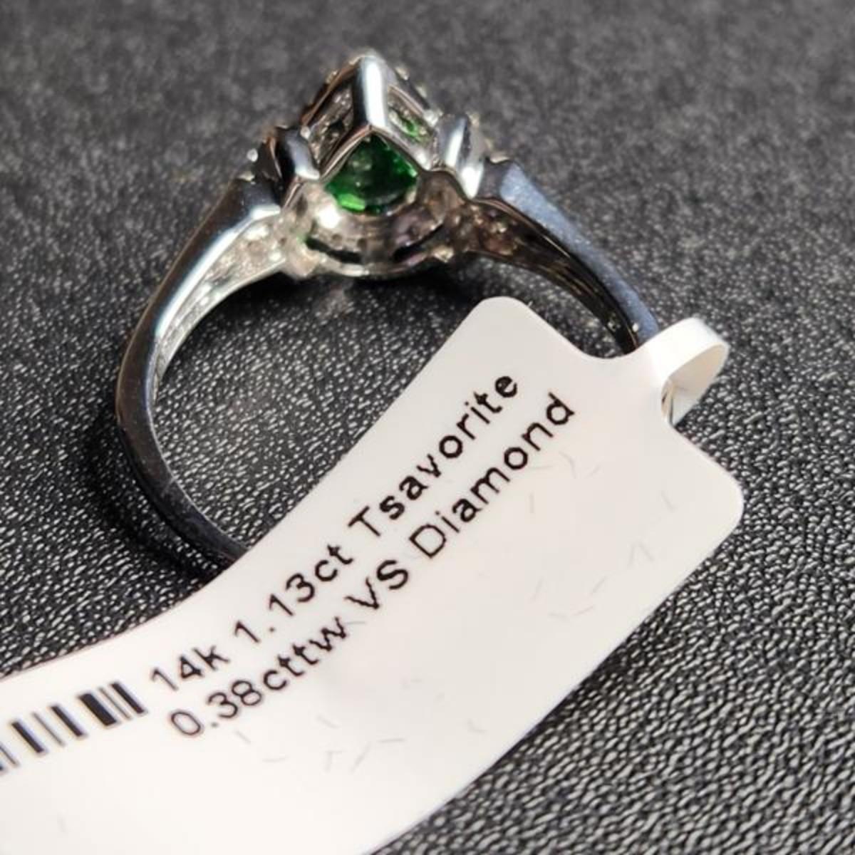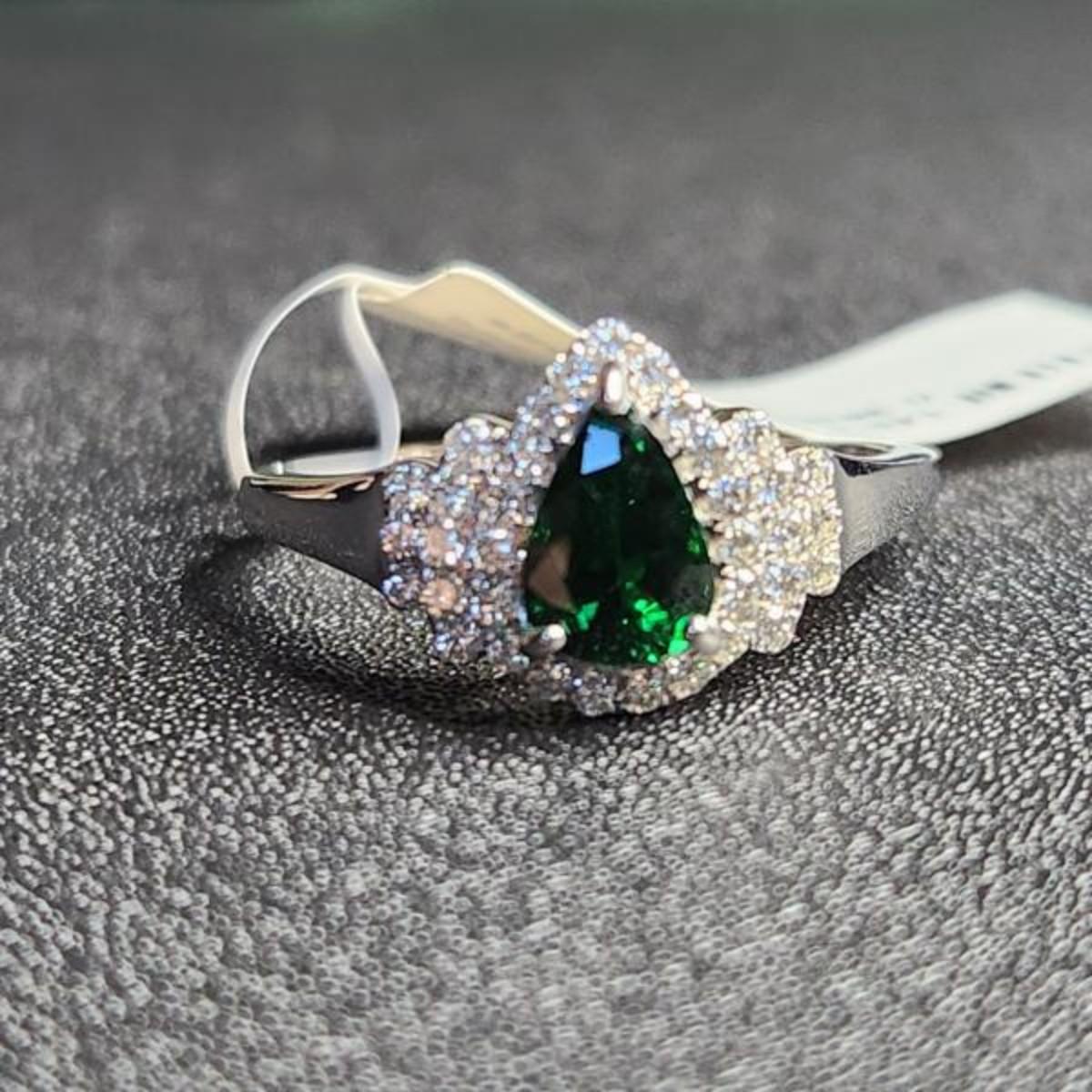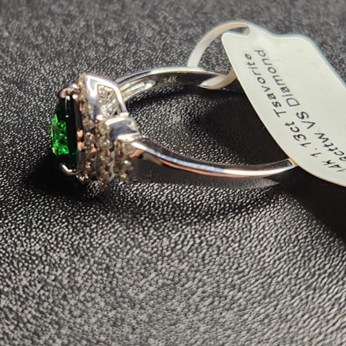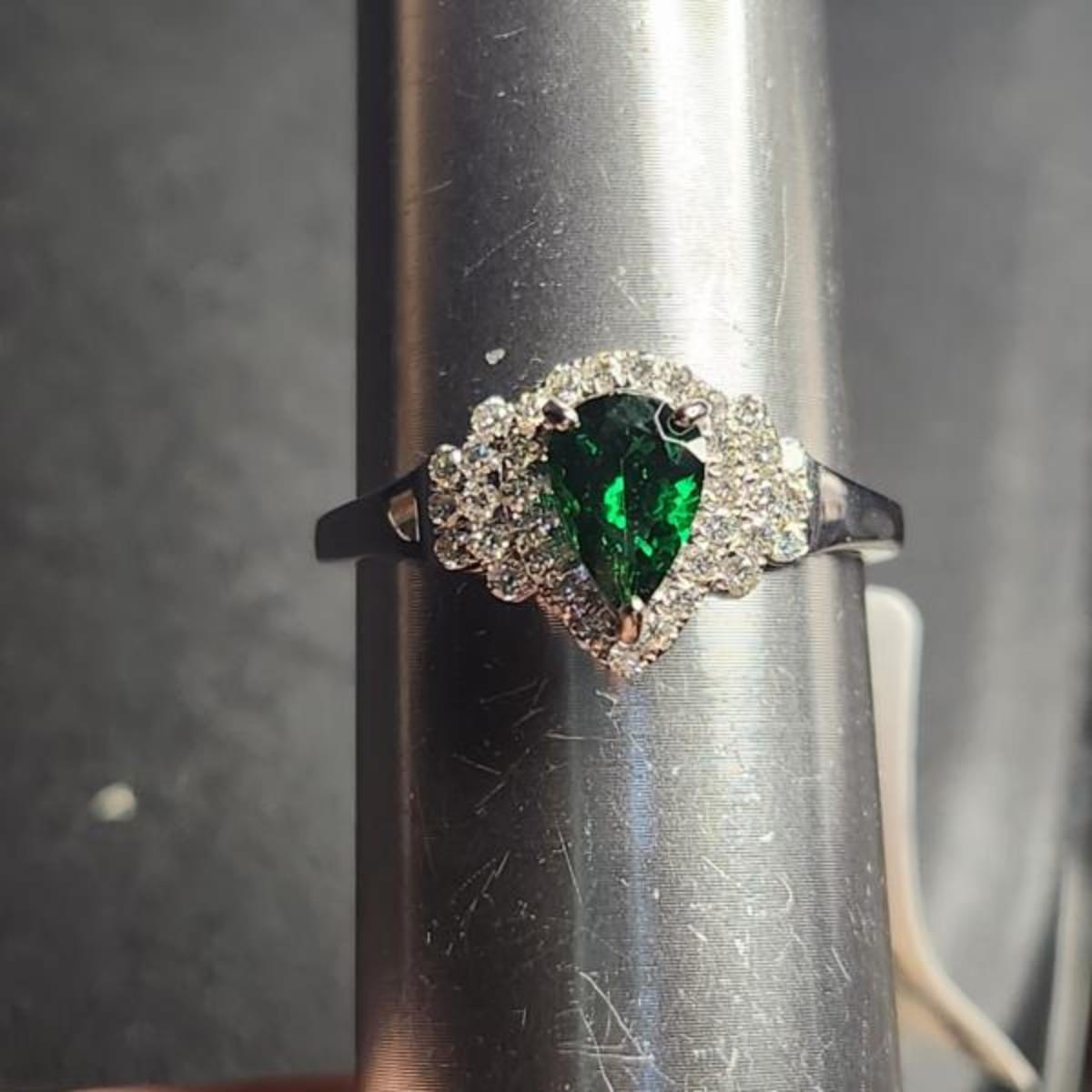 14k white gold 1.51 cttw pear tsavorite diamond ring size 12