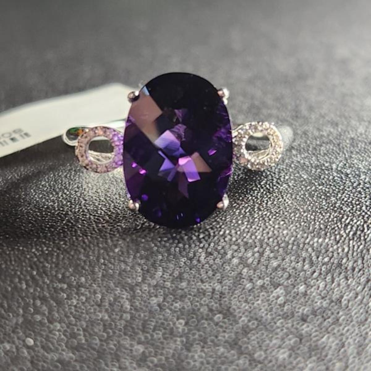 14k White Gold Amethyst Diamond Ring 5.30cttw Size 12.5