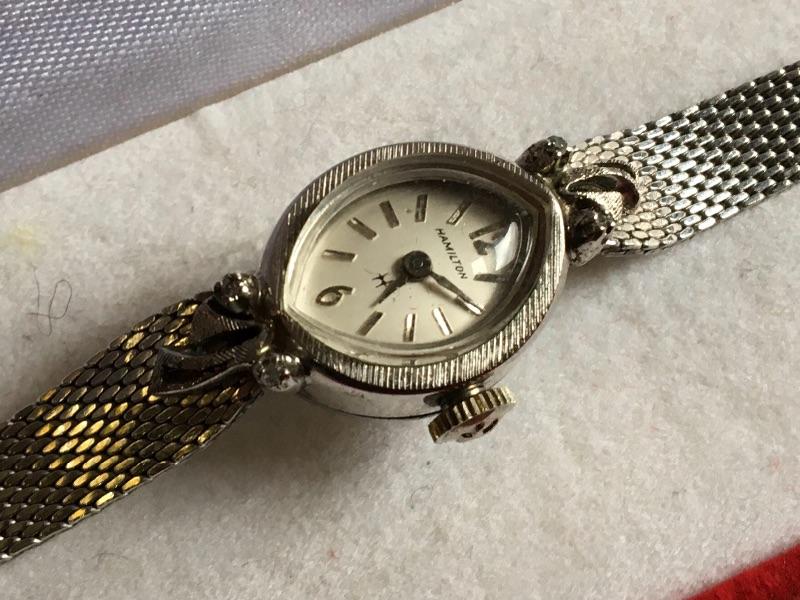 14k White Gold Hamilton Ladies Watch with Diamonds. LOT A24