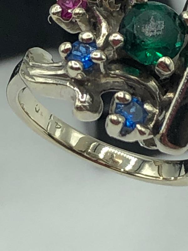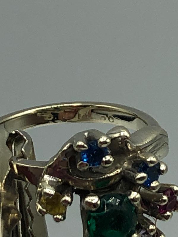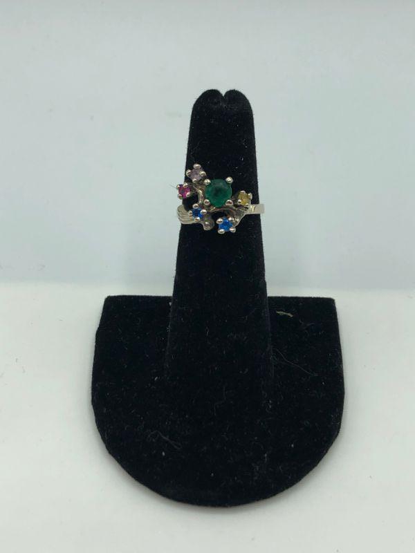 Vintage 14k white gold Mother's Ring. Multistone ring, has 5 small stones and 1 larger stone. Size 5.