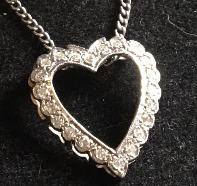 14k White Gold Necklace and 2 CTW Diamond Heart Pendant 18” Chain
