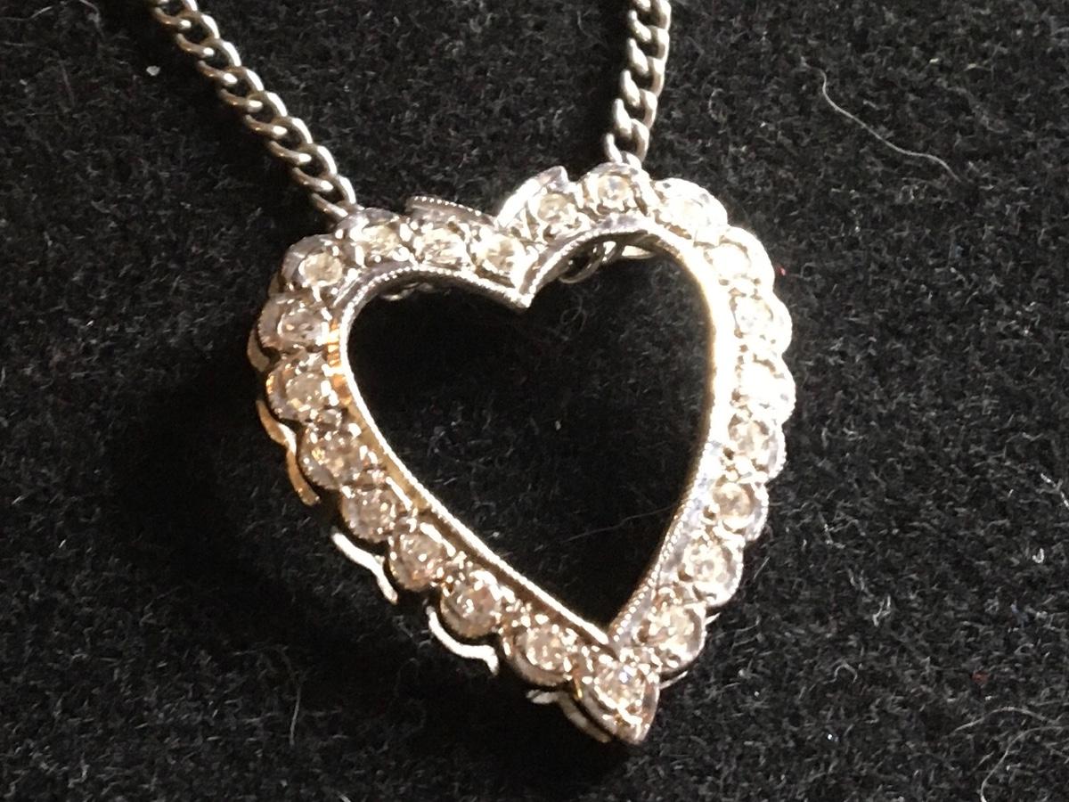 14k White Gold Necklace and 2 CTW Diamond Heart Pendant 18” Chain