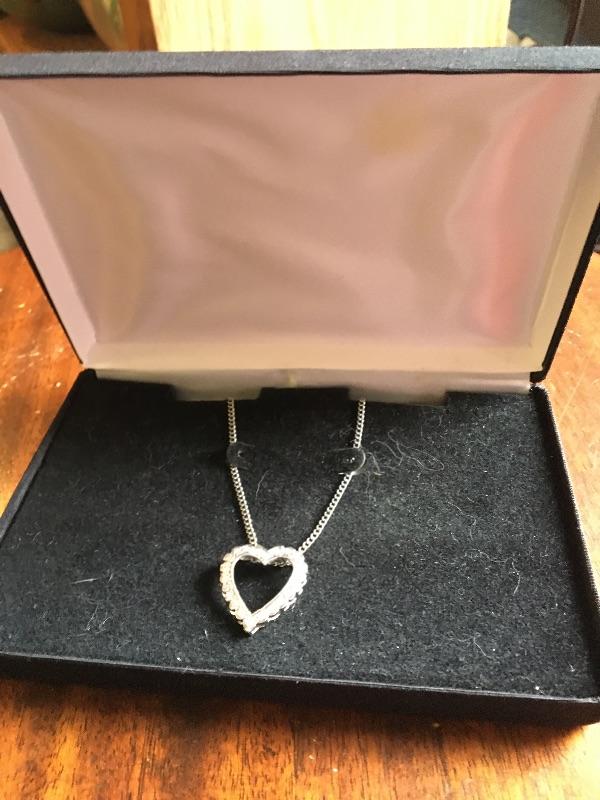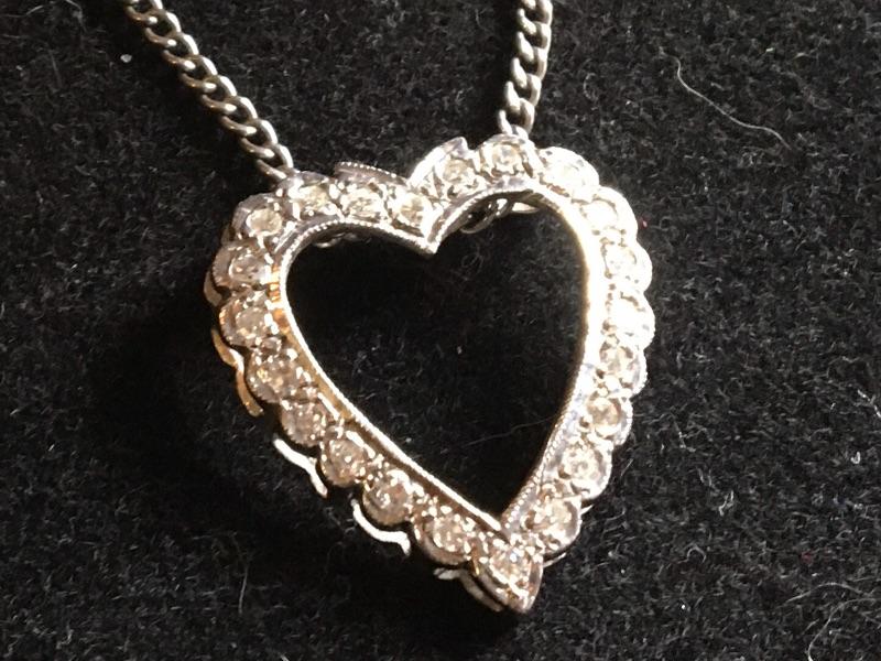 14k White Gold Necklace and 2 CTW Diamond Heart Pendant 18” Chain.