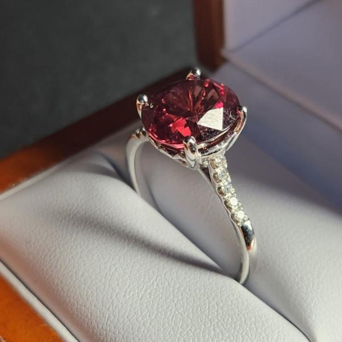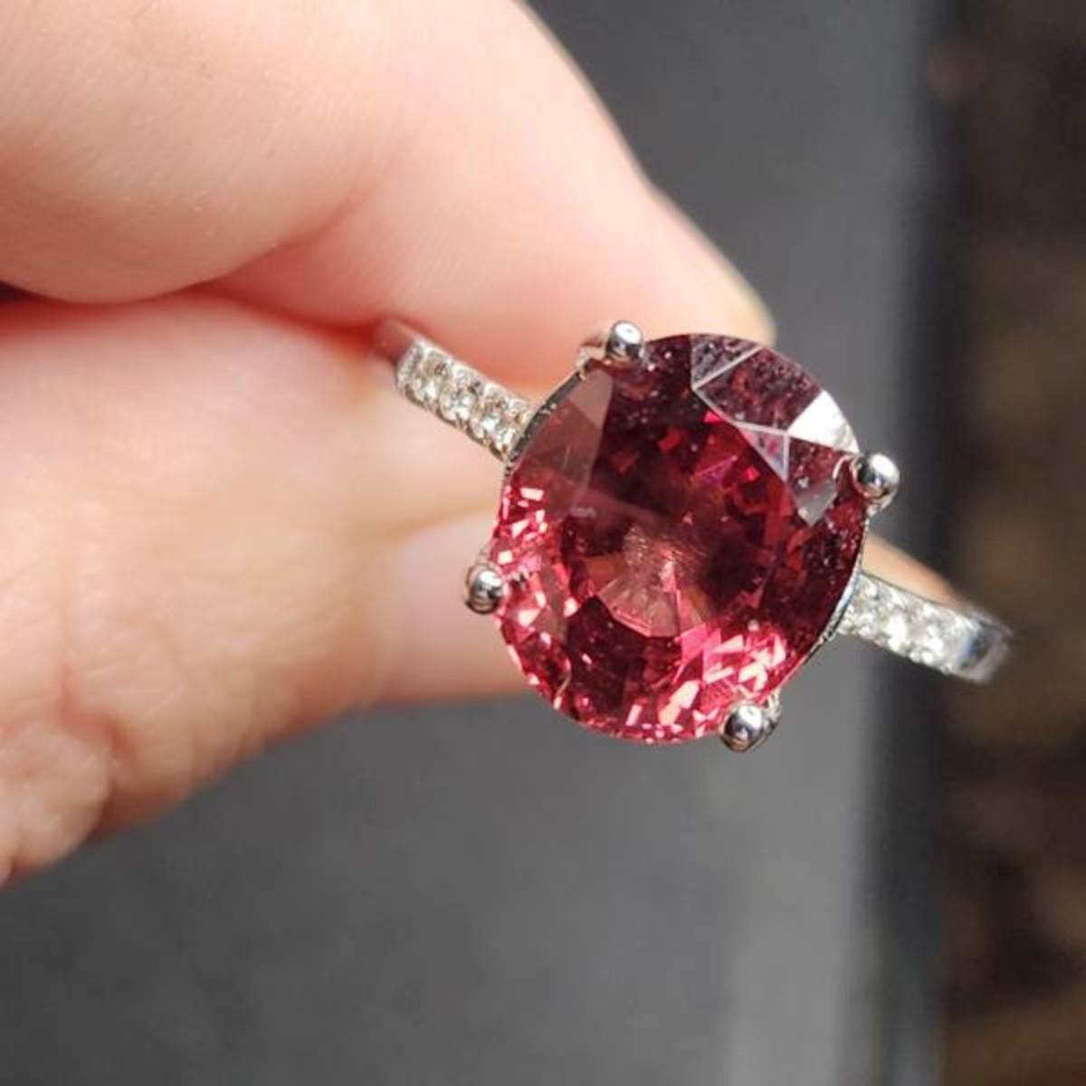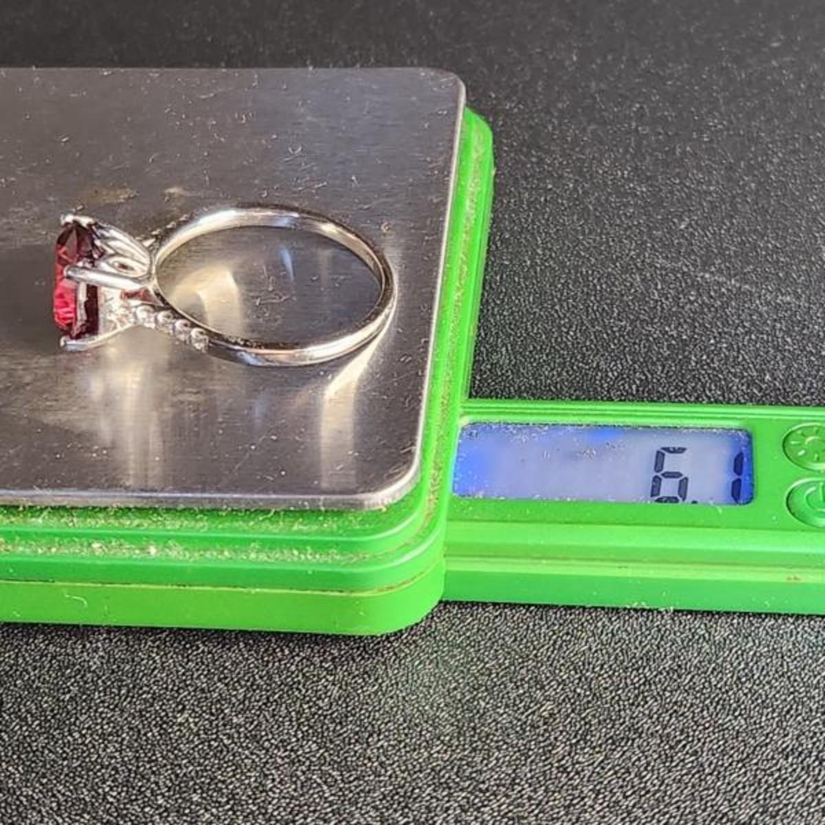 14k White Gold Oval 7.46 Cttw Malaya Garnet Diamond Ring Size 12