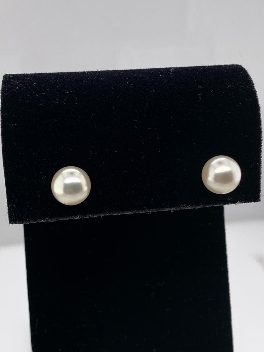 Stamped 14K on post. Has backings. Pearl measures approx. 1/4". Weighs approx. 1.3g.
