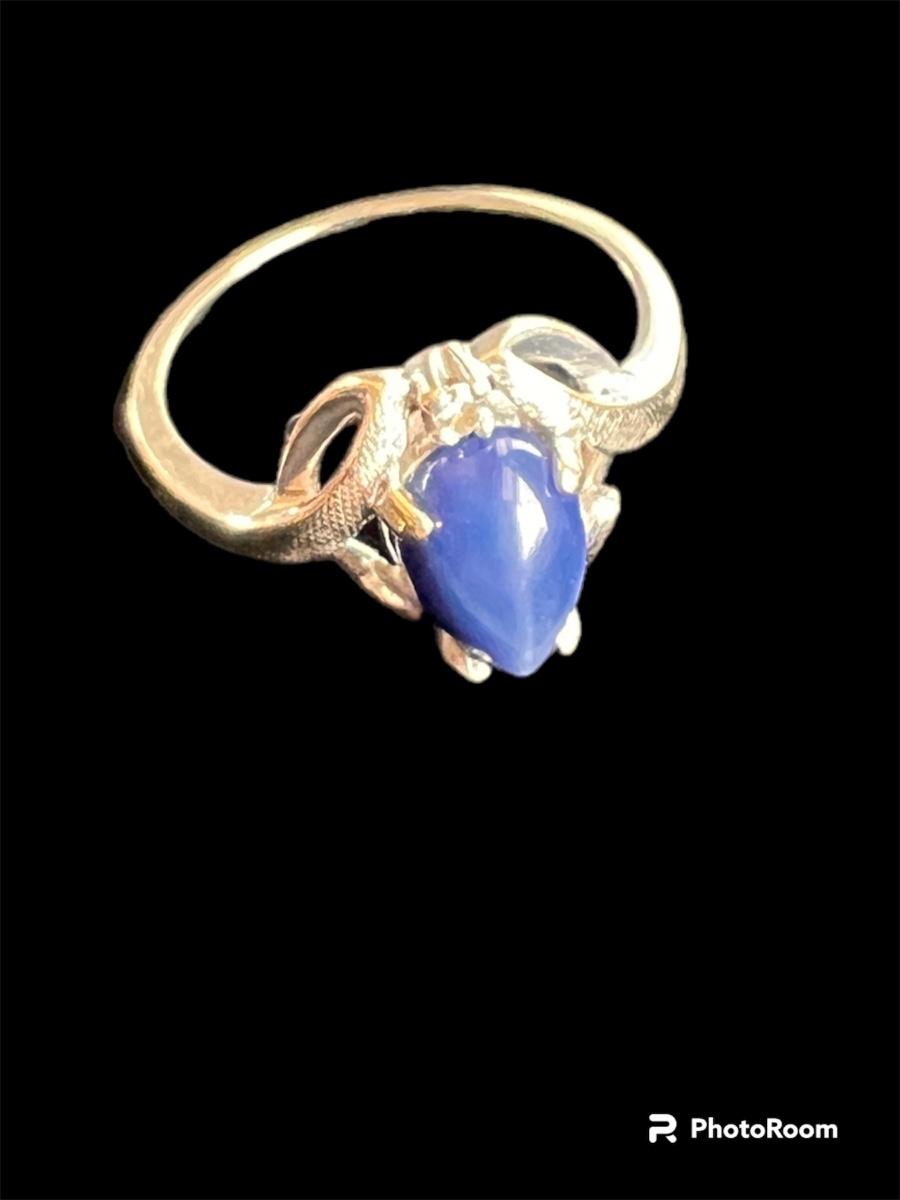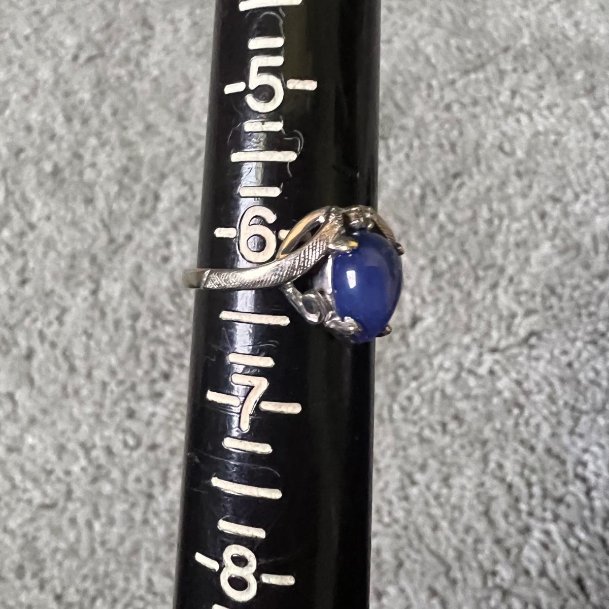 Blue star sapphire and possible (untested) diamond with white gold.