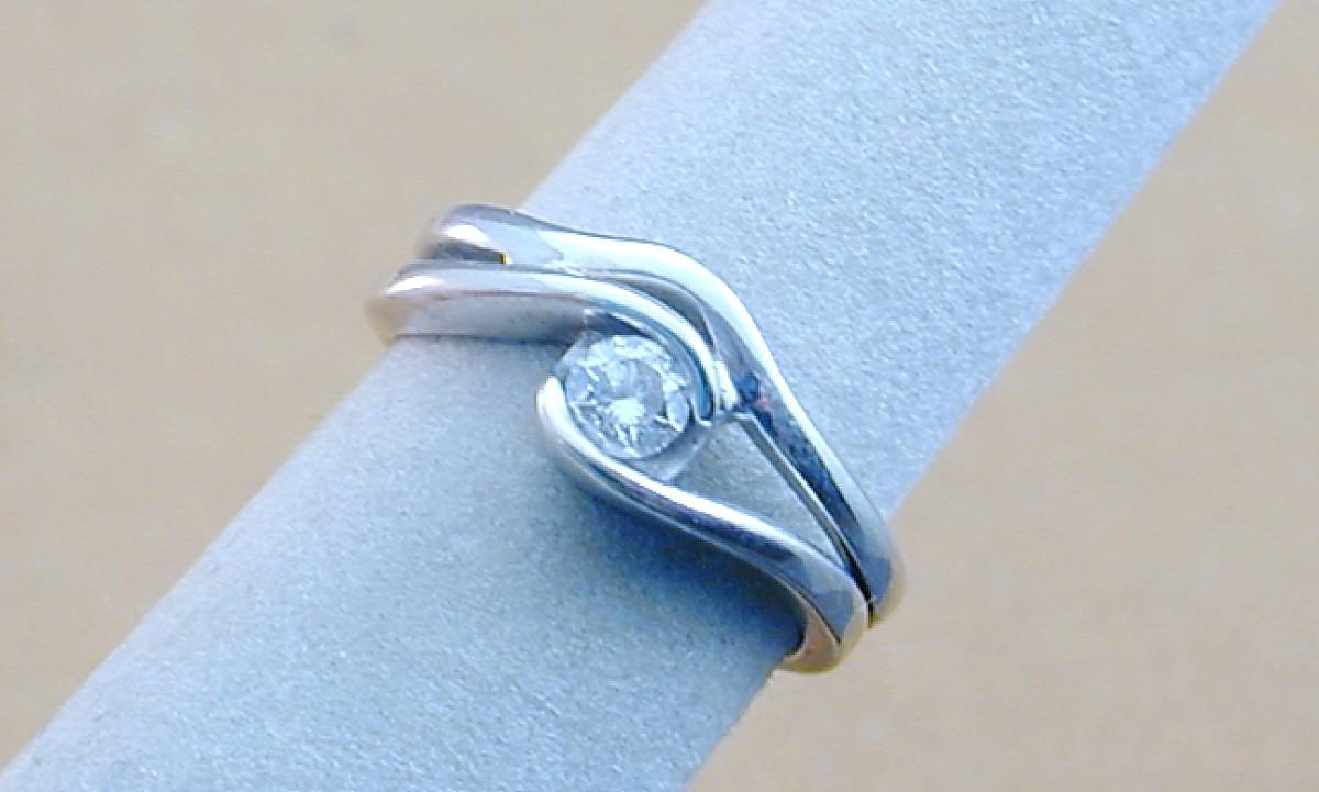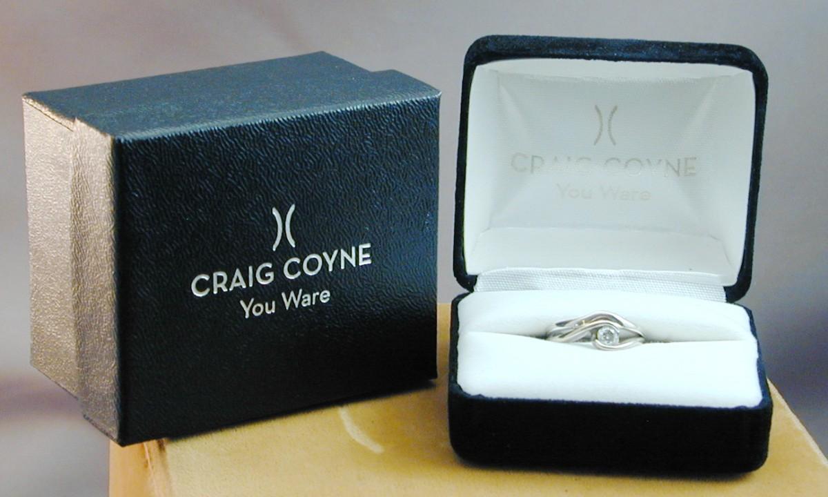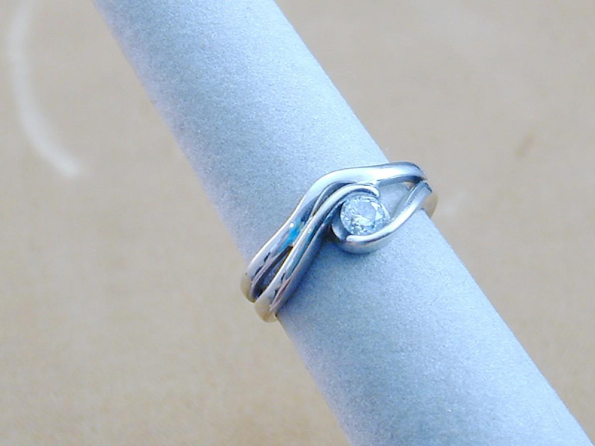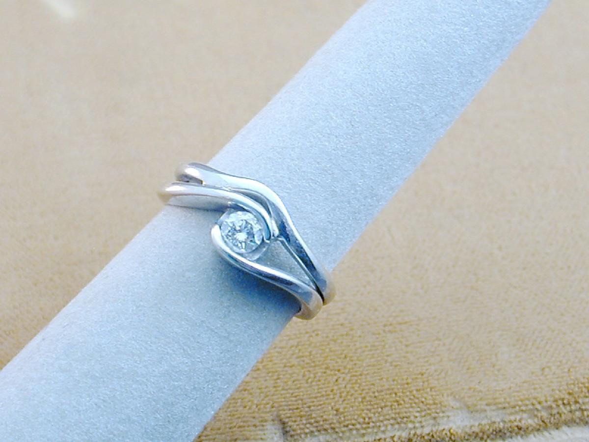 14k white gold ring, size 4.5, round diamond measuring 4mm in diameter. Weighs 3.9 grams. marked 14k, inscribed 10-14-12.