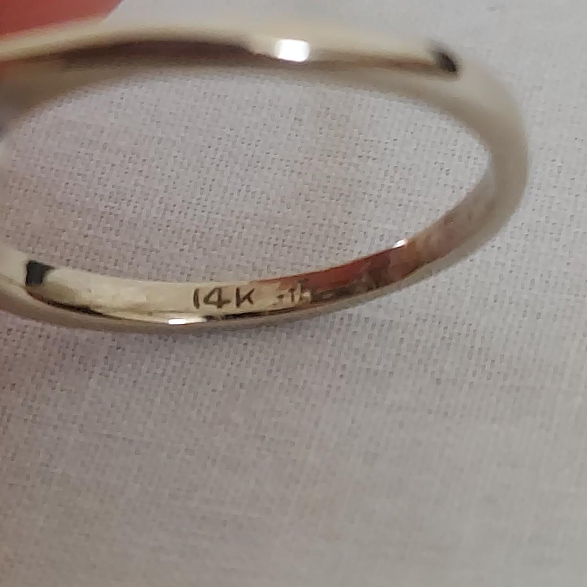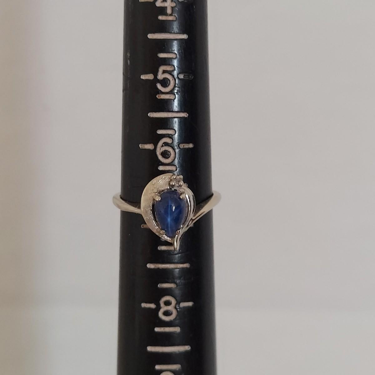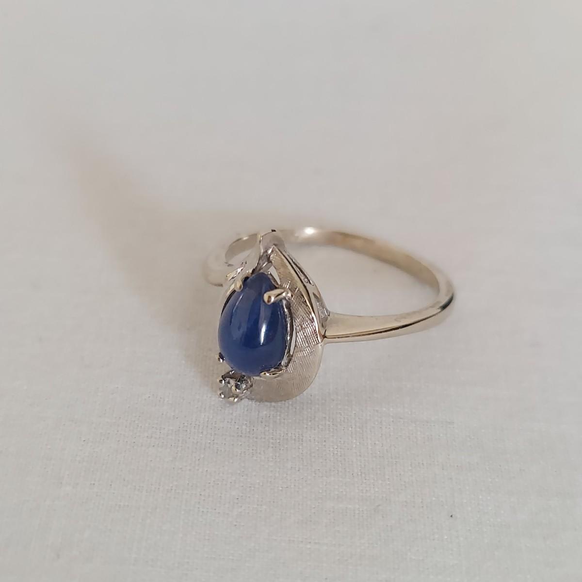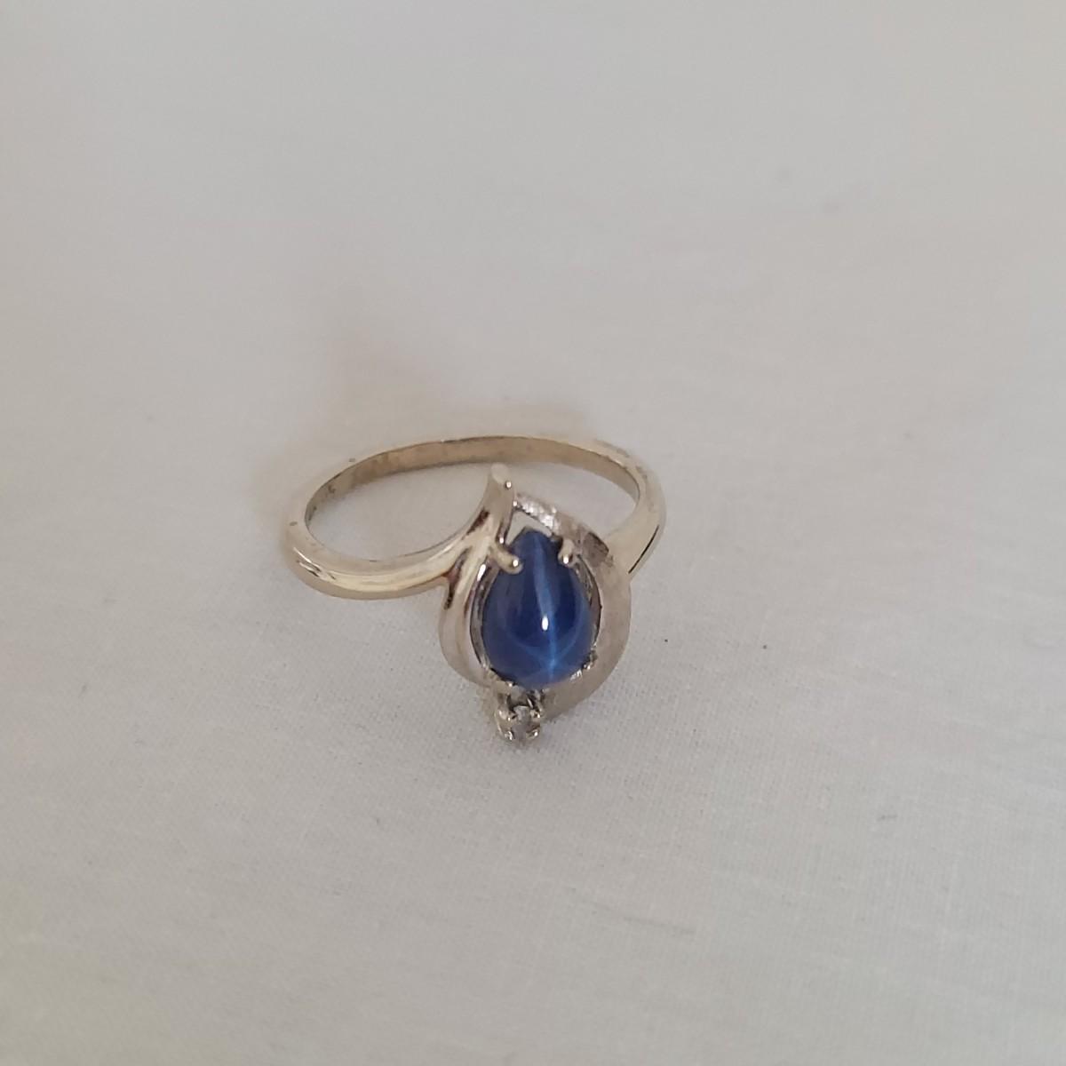 White gold ring with what appears to be a star sapphire stone. The ring is stamped 14k. Shipping available. All sales are final. No returns or refunds. Please bid accordingly.