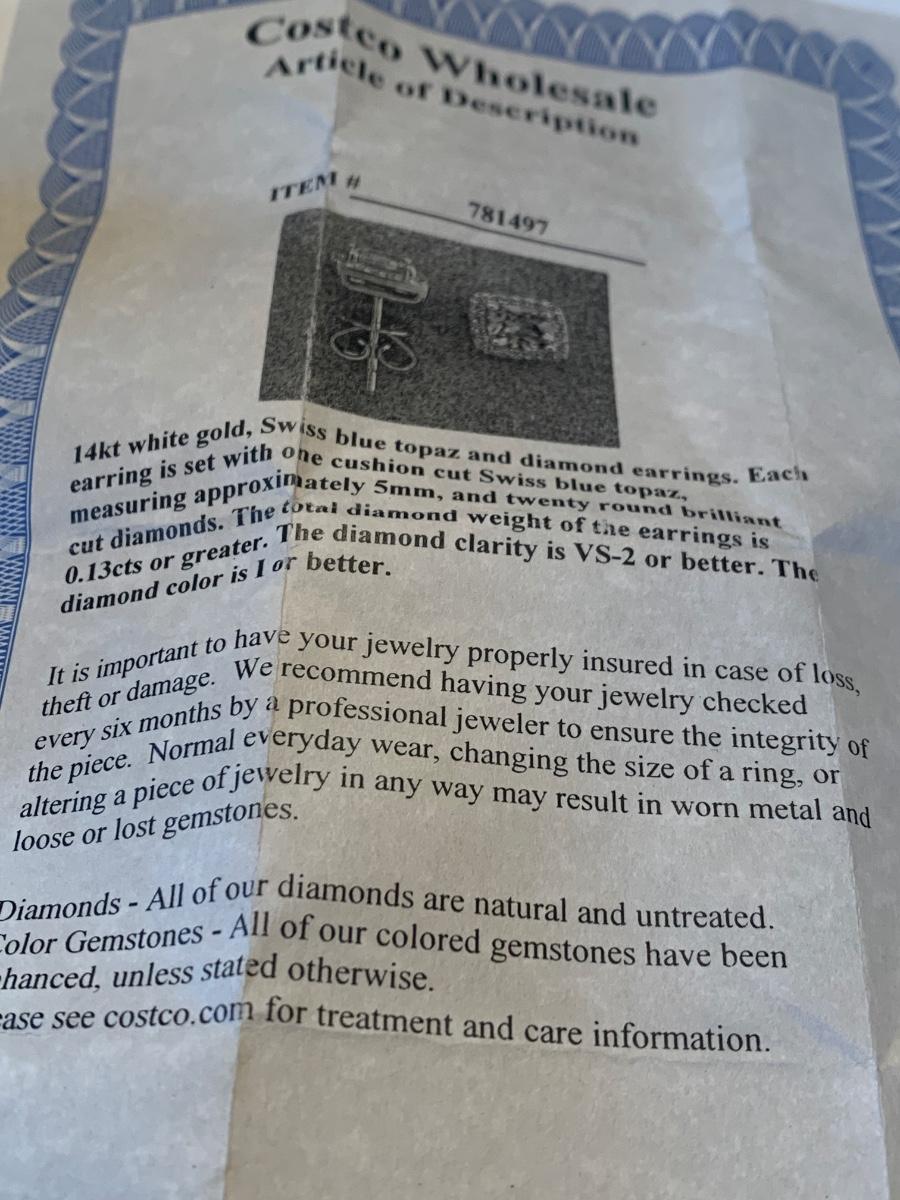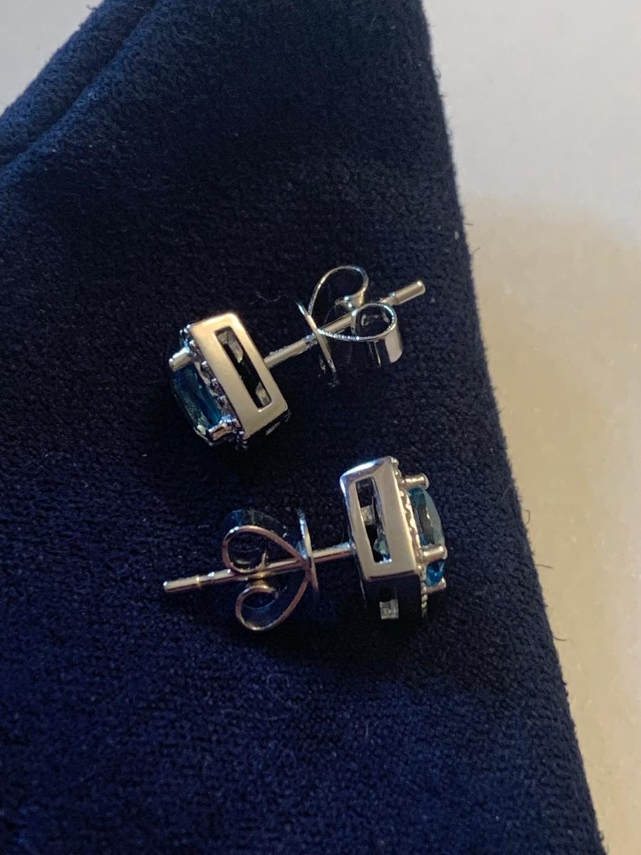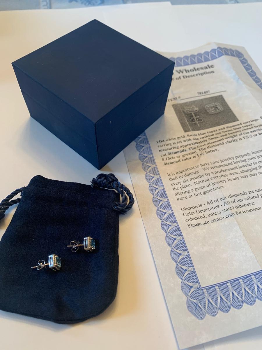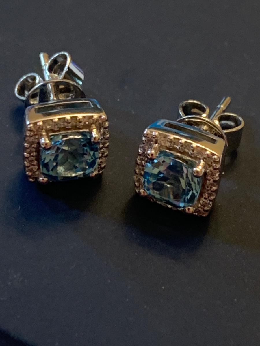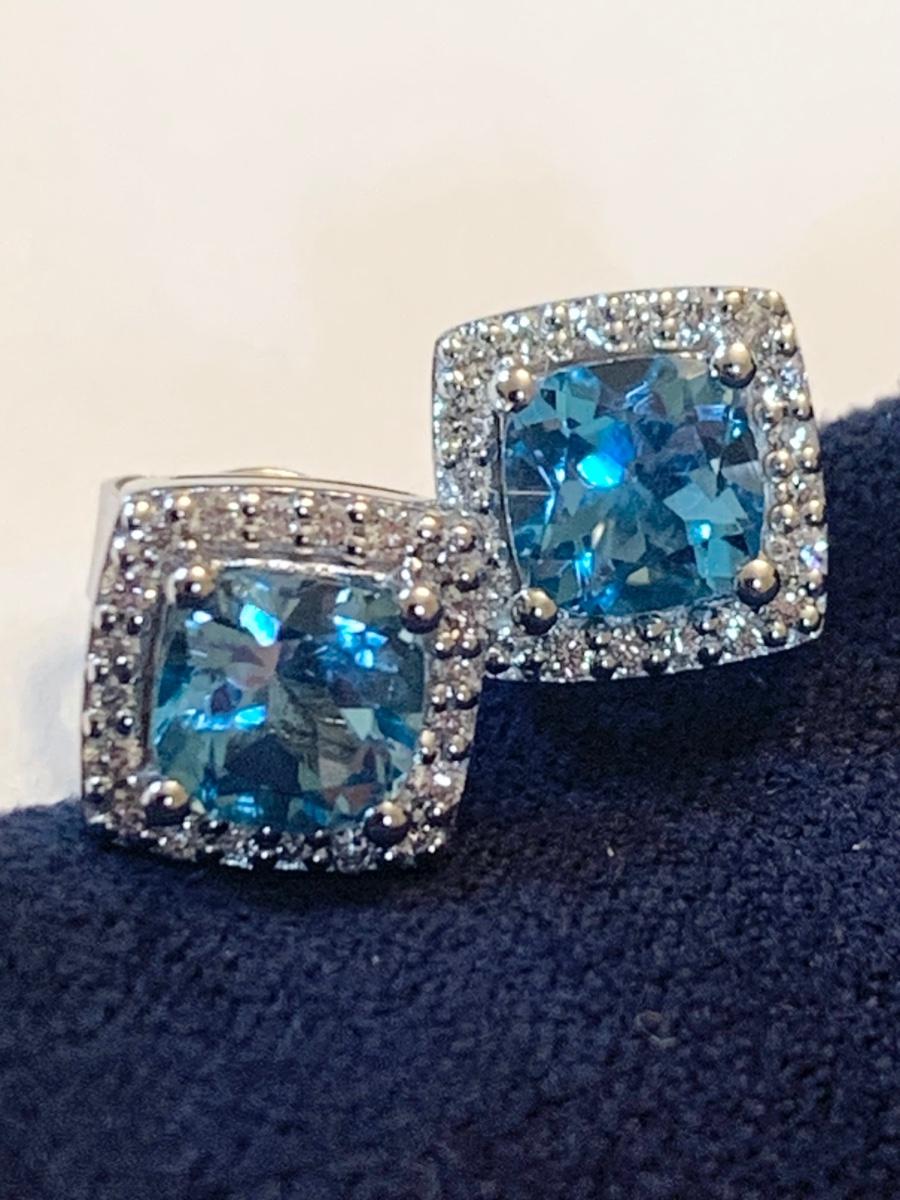 14k White Gold Swiss Blue Topaz and Diamond Earrings