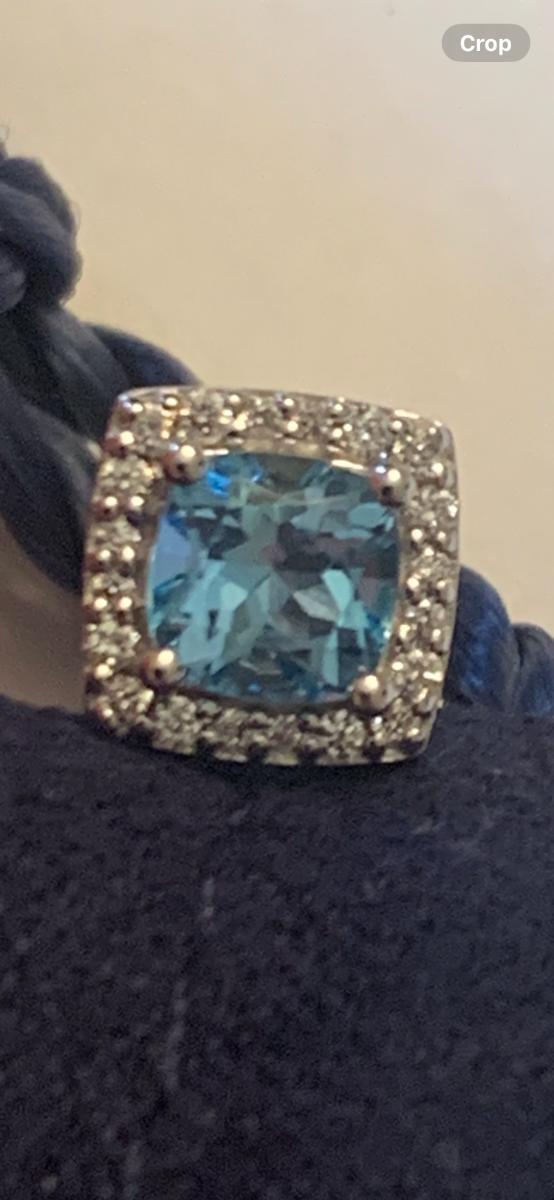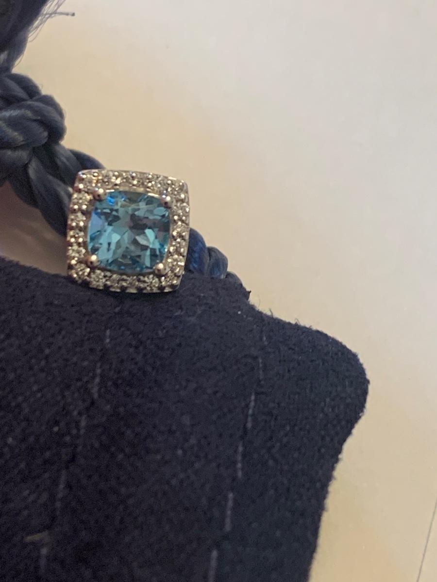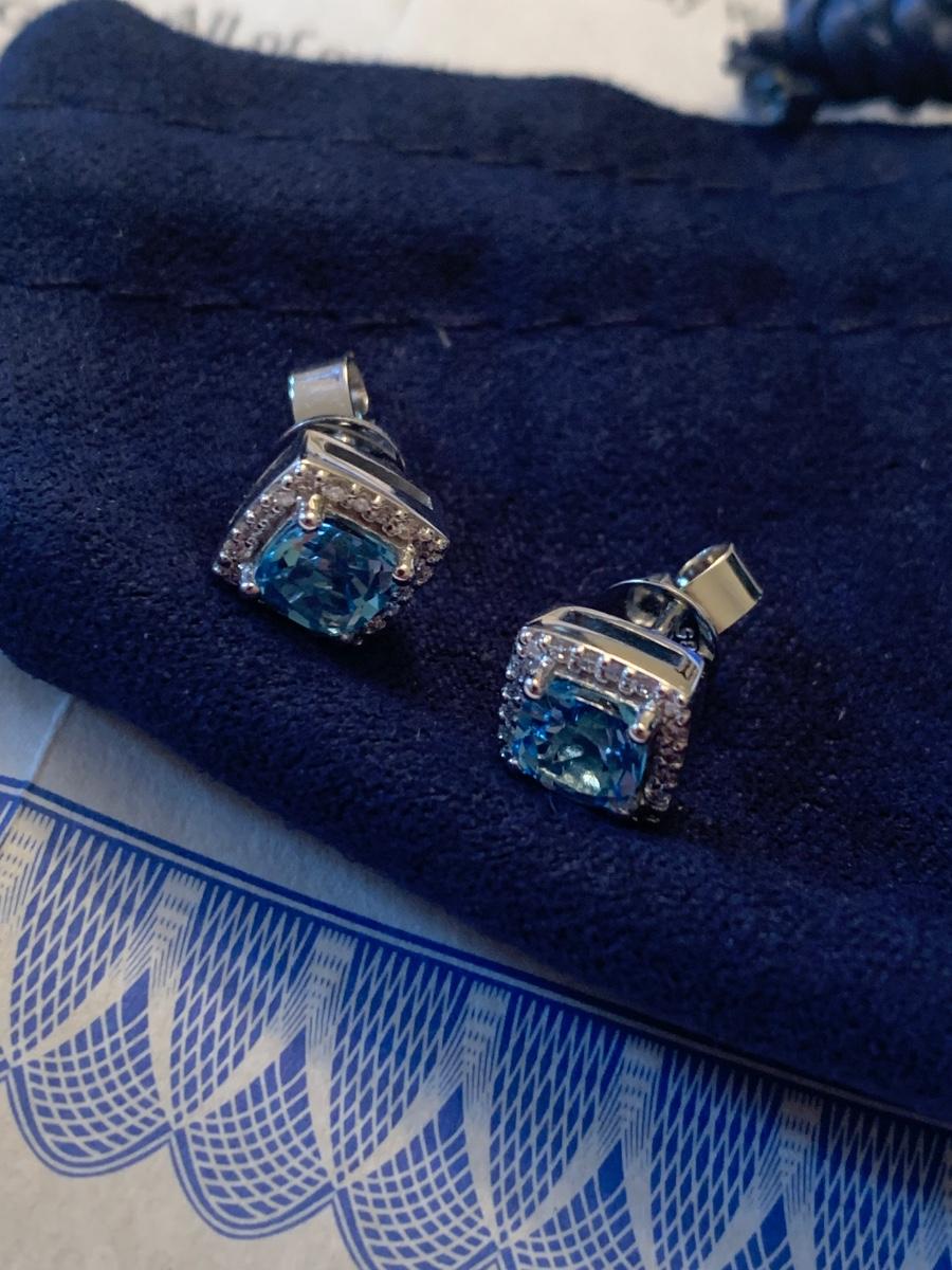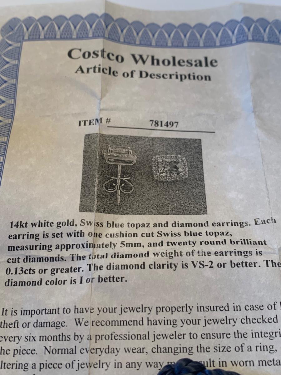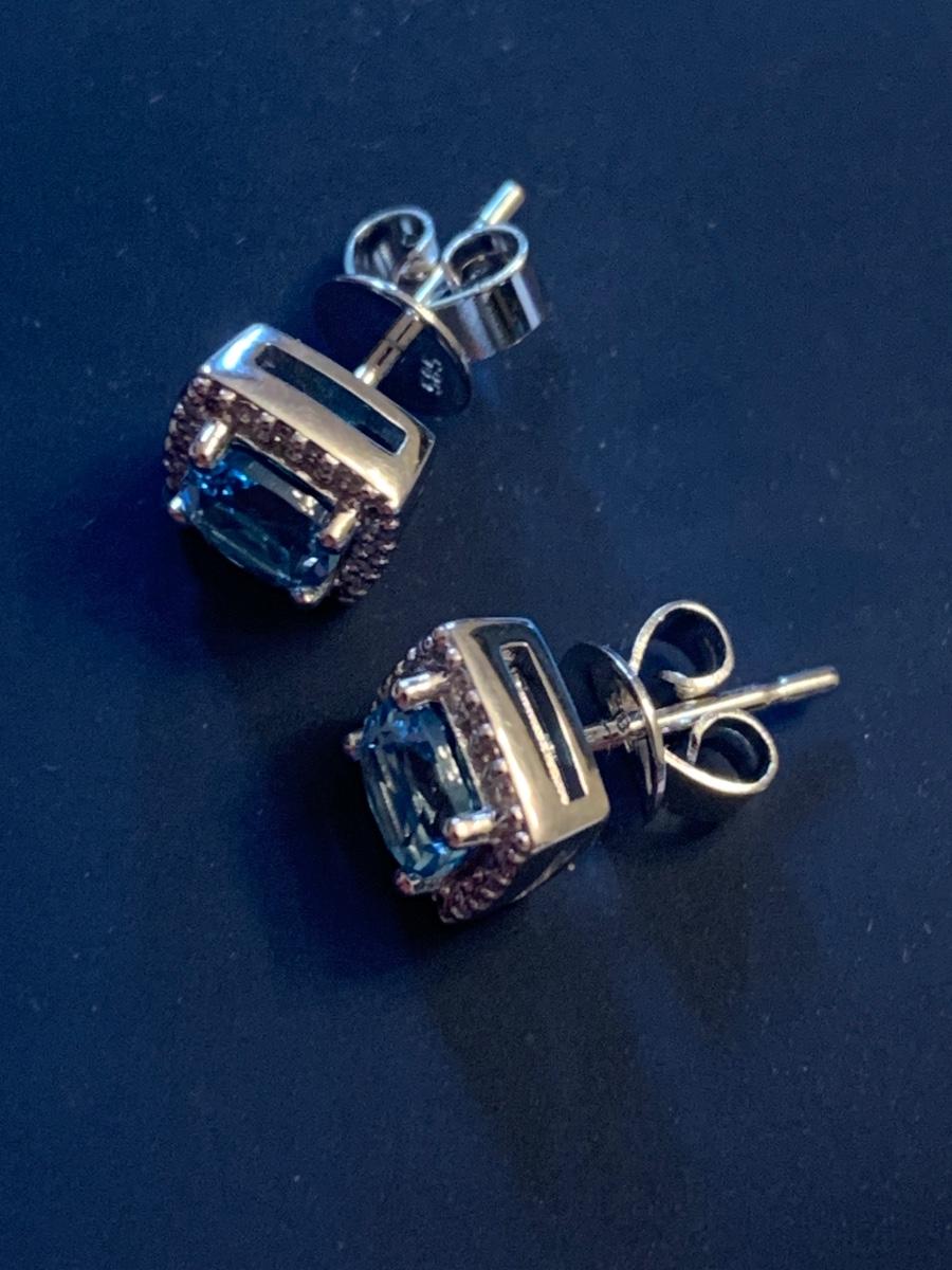 14k White Gold Swiss Blue Topaz and Diamond Earrings
