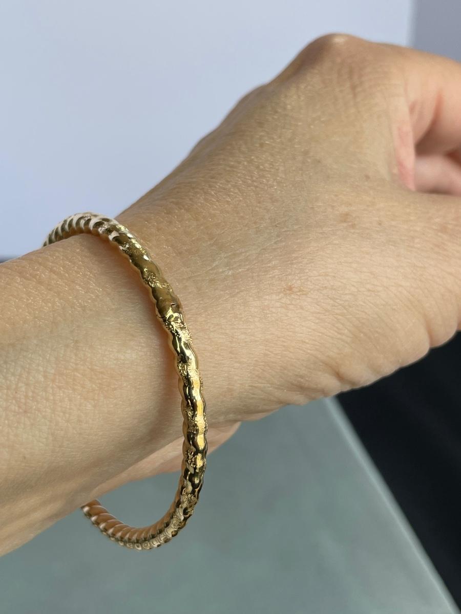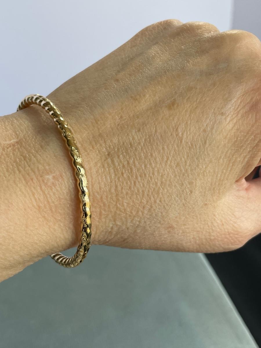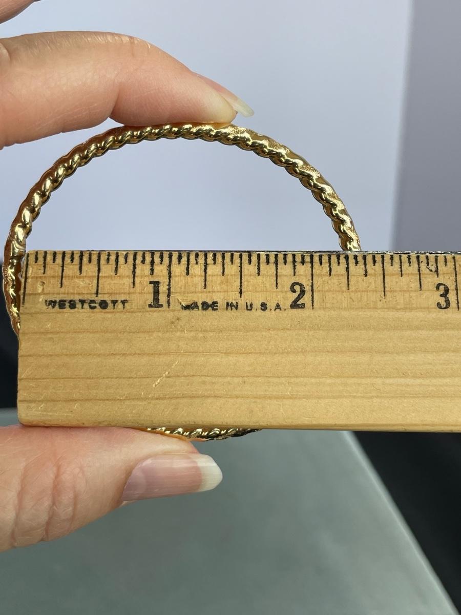 2 1/4” diameter fits average size wrists. Reserve price is scrap value on 5 gram weight.