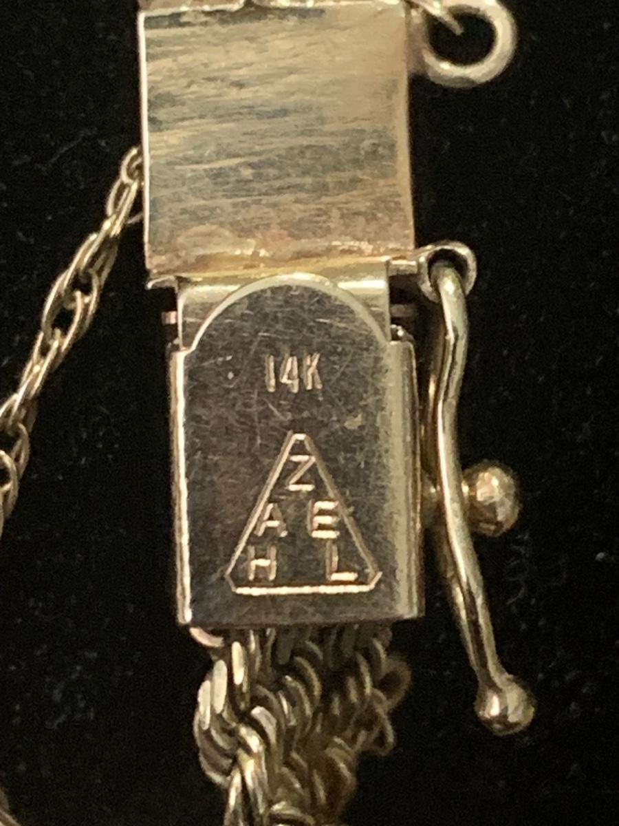 7” 14k Yellow Gold - Total Weight 13.7 grams - Stones untested.
