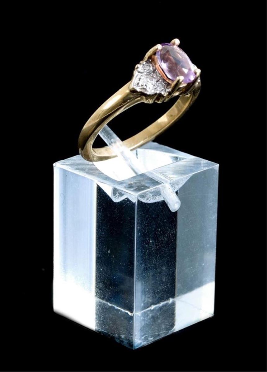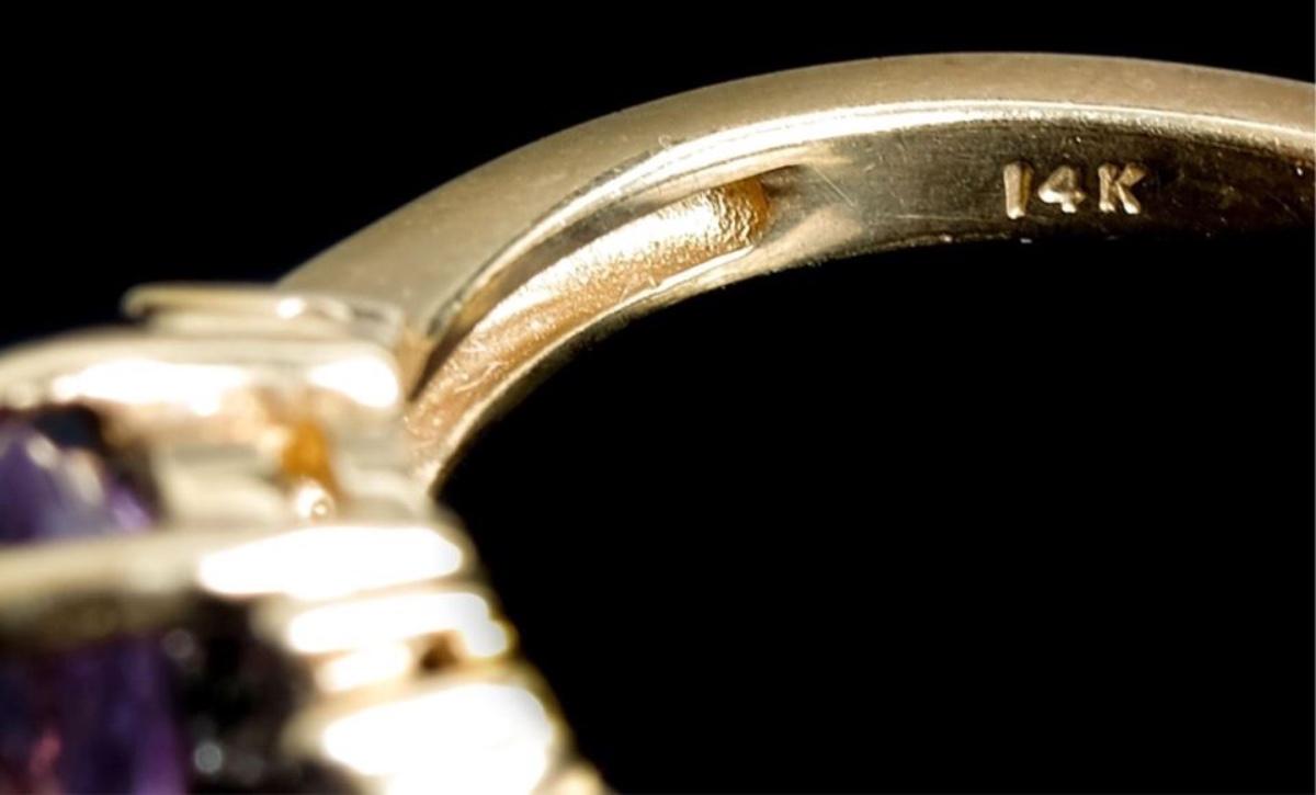14k Yellow Gold Diamond & Amethyst Ring, Size 7