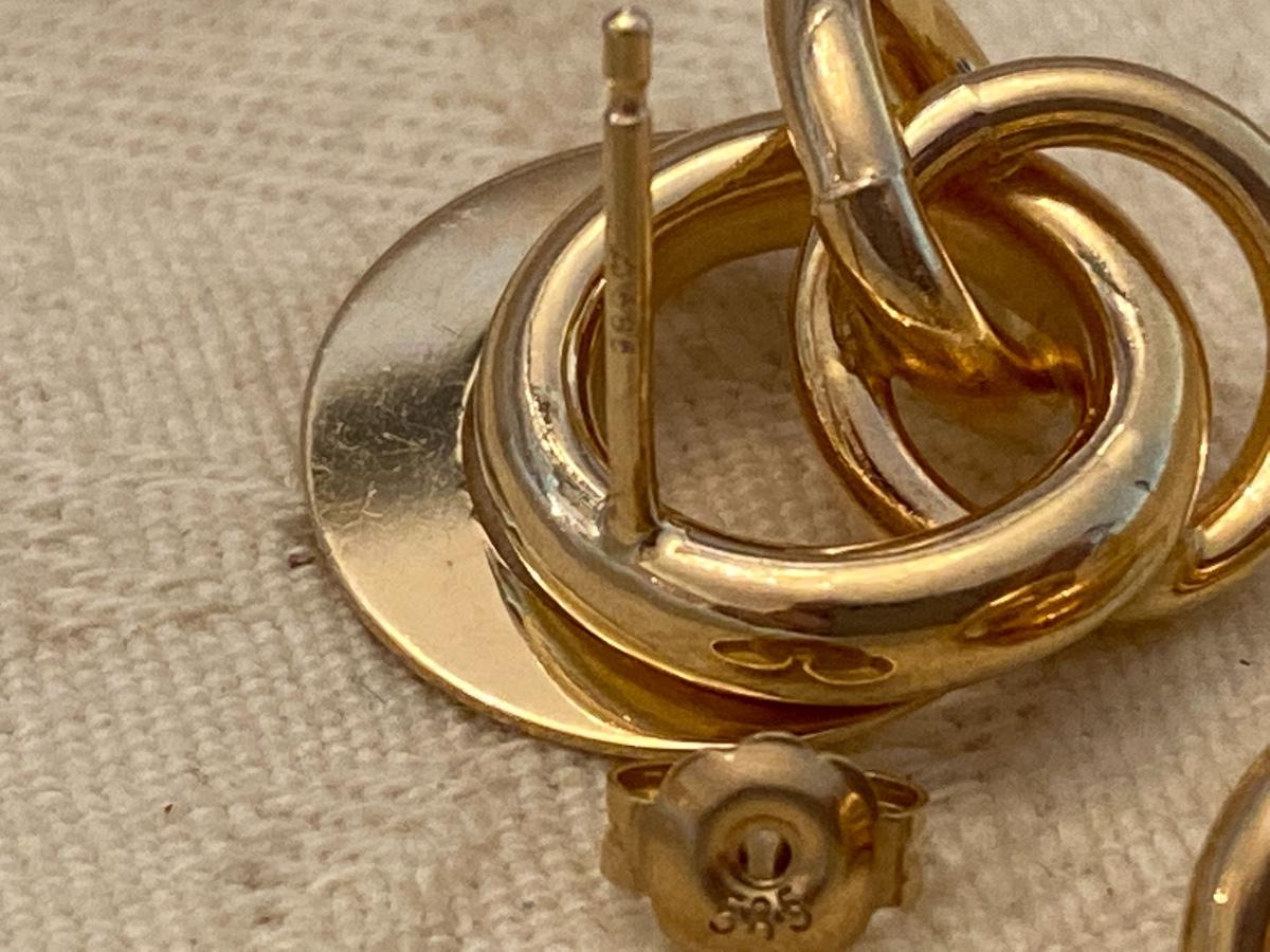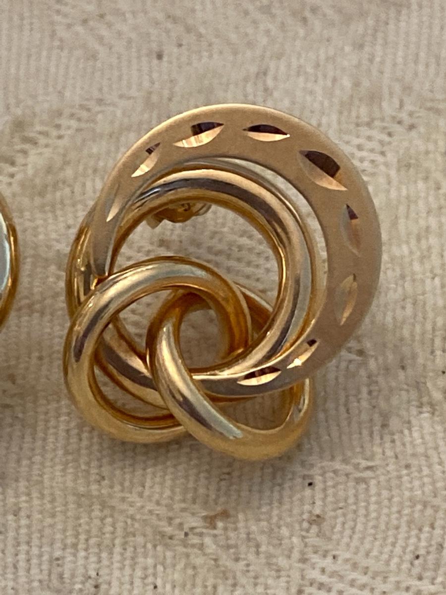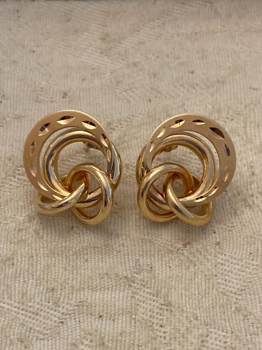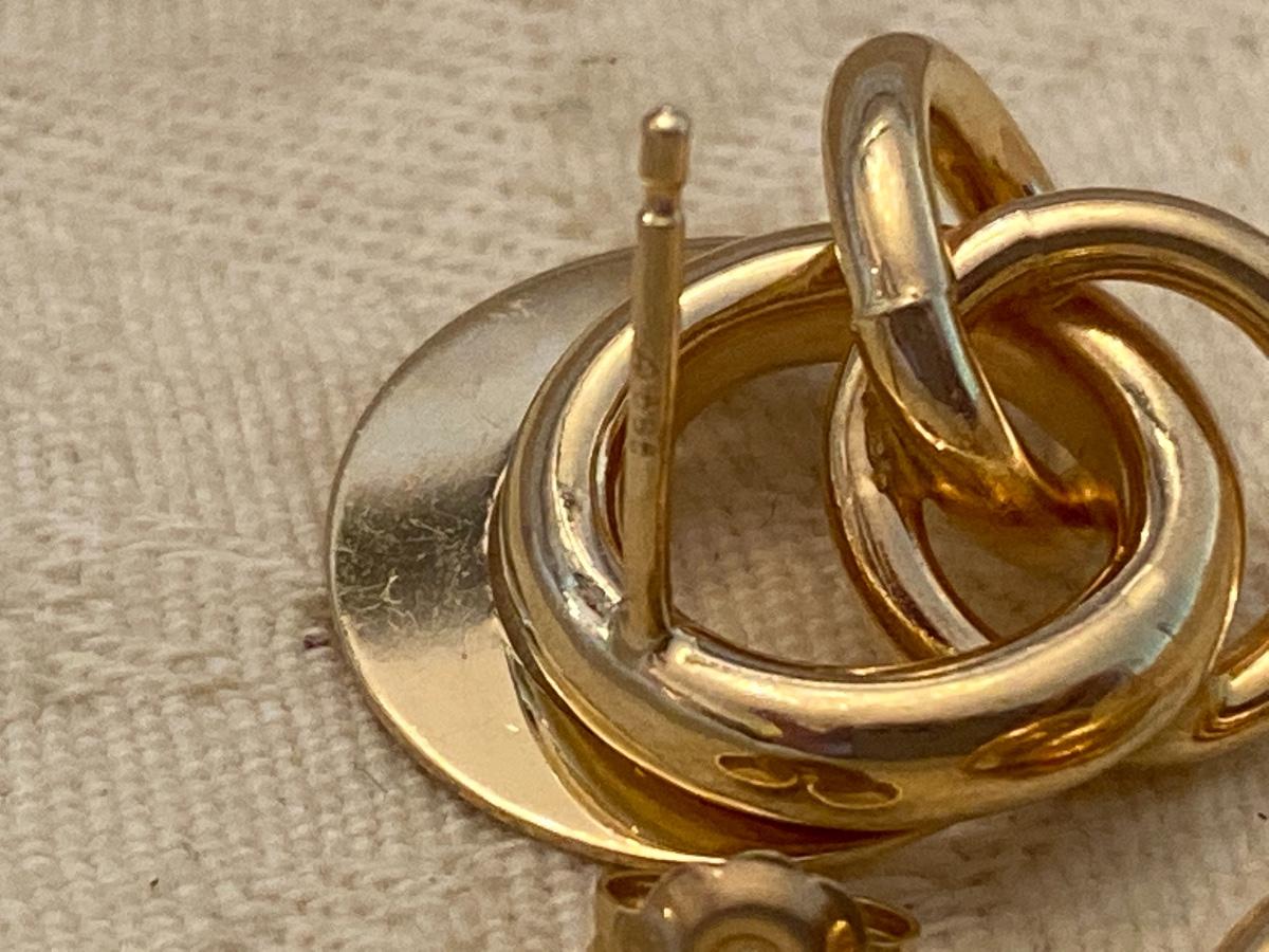 14Kt Yellow Gold Earrings fitted for Pierced Ears, Stamped 585 on post and backing. Measures 3/4” x 1/2”. Total weight 4.4 grams or 2.8 dwt.