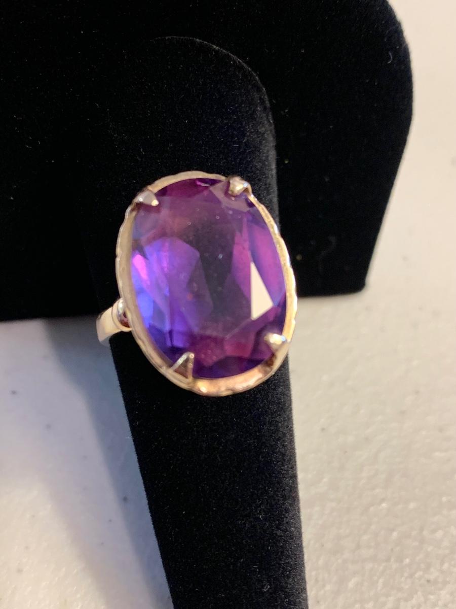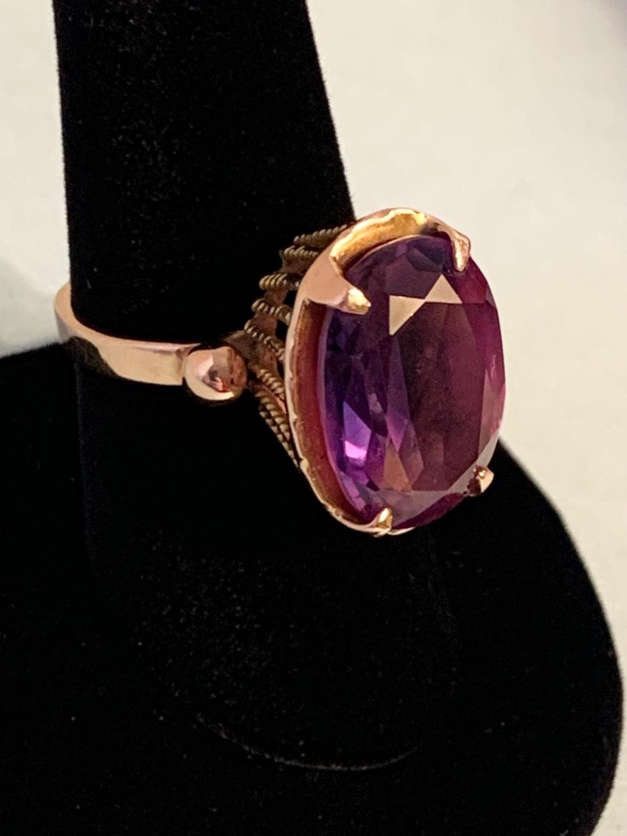 14k Yellow Gold Estate Ring w/ Large Stone - Size 8.5 - 10.4 grams