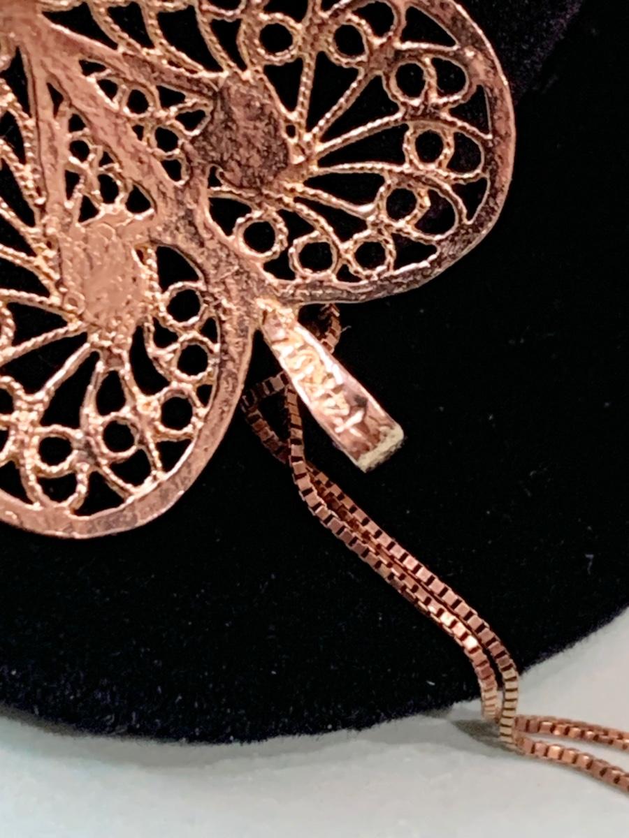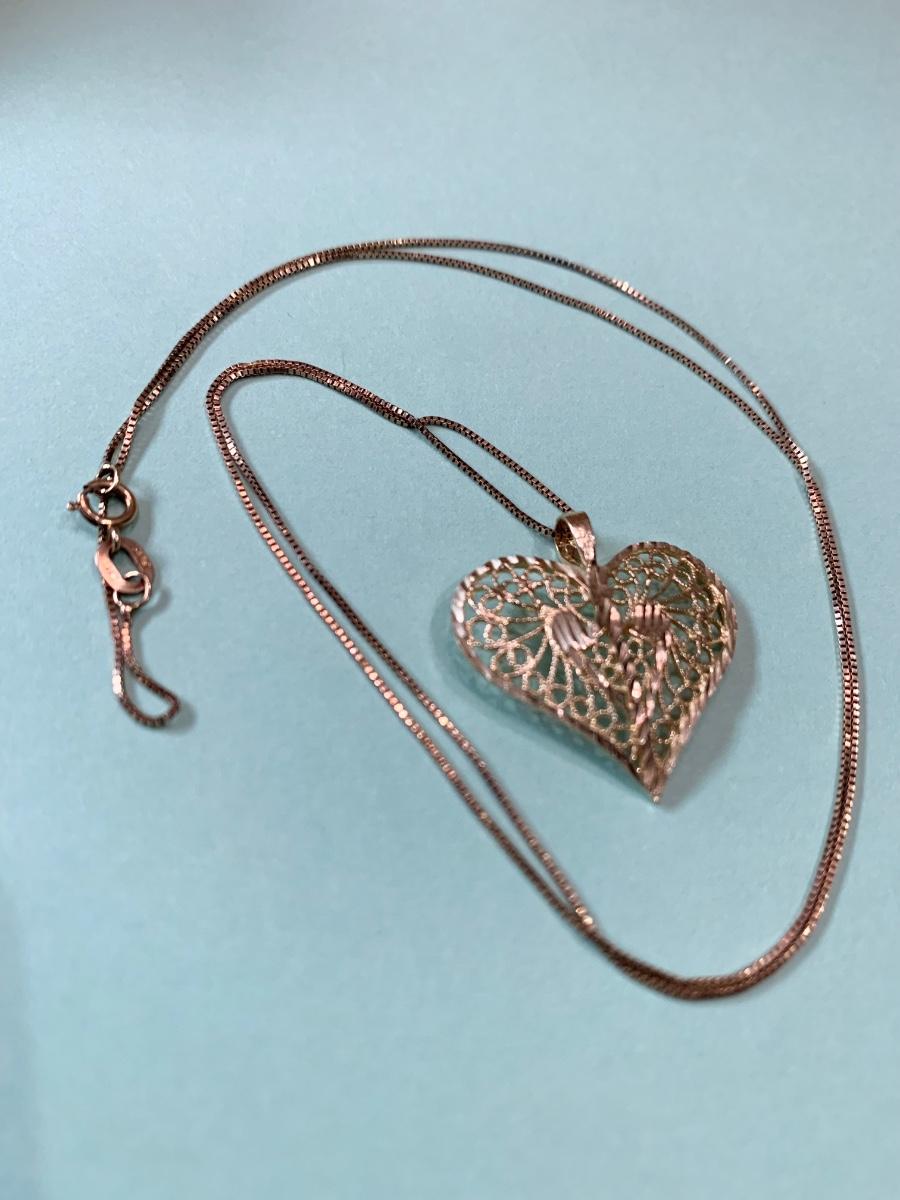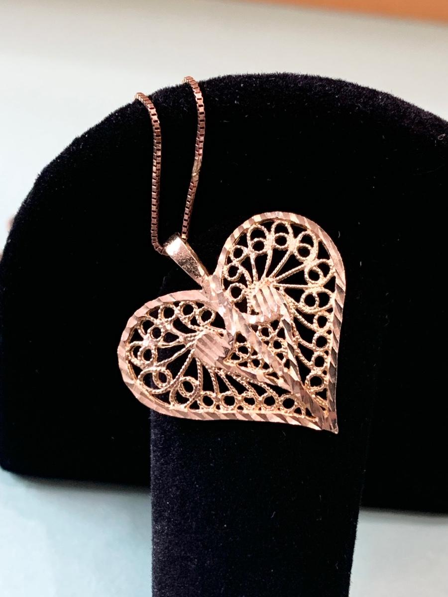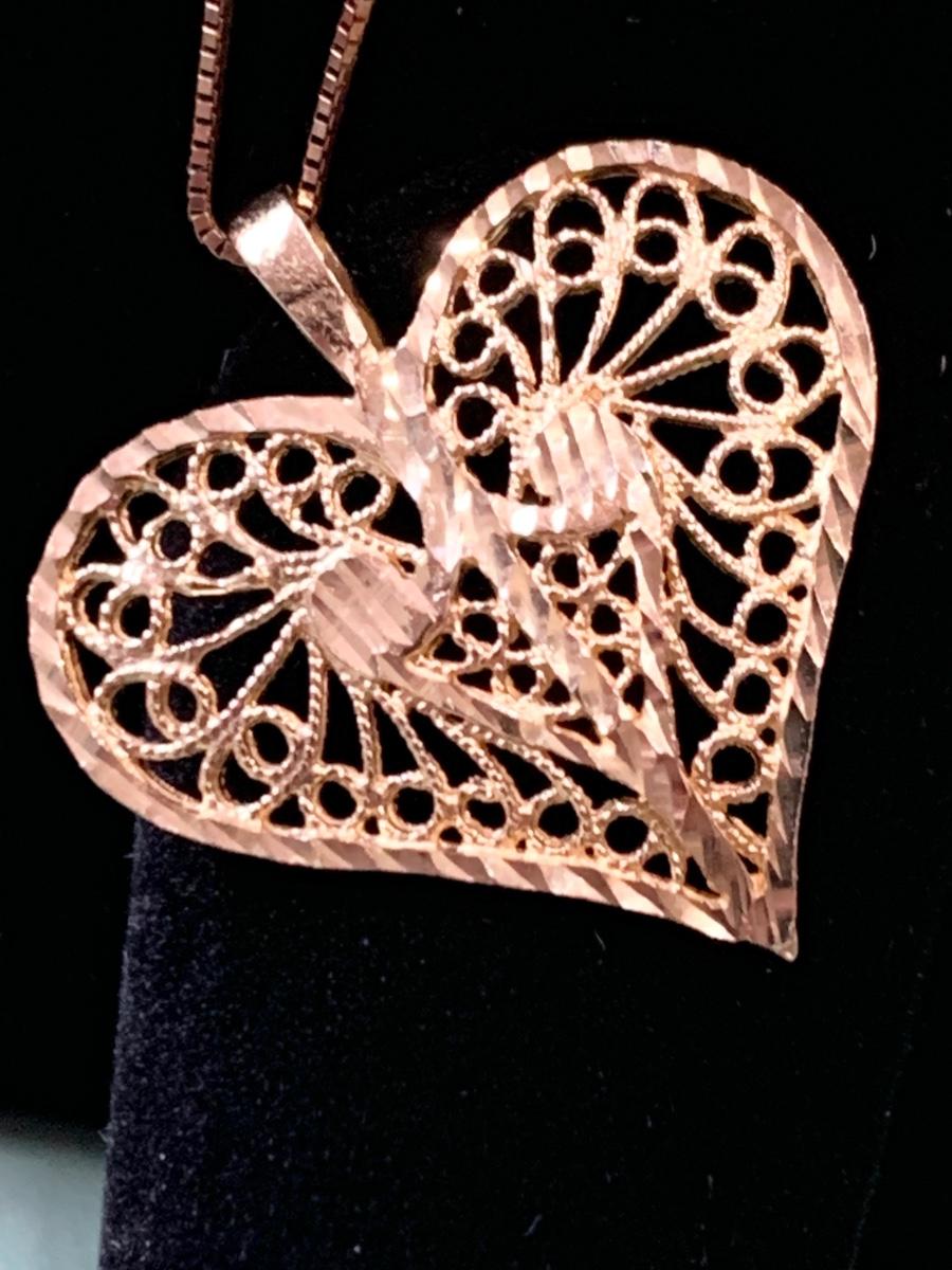 14k Yellow Gold Filigree Heart Pendant & 18” Necklace