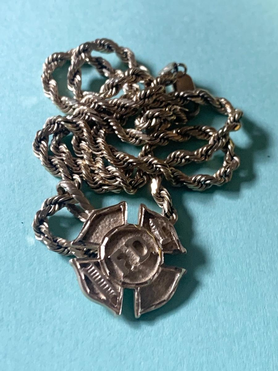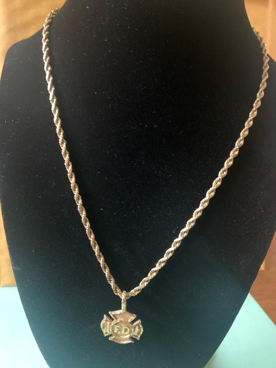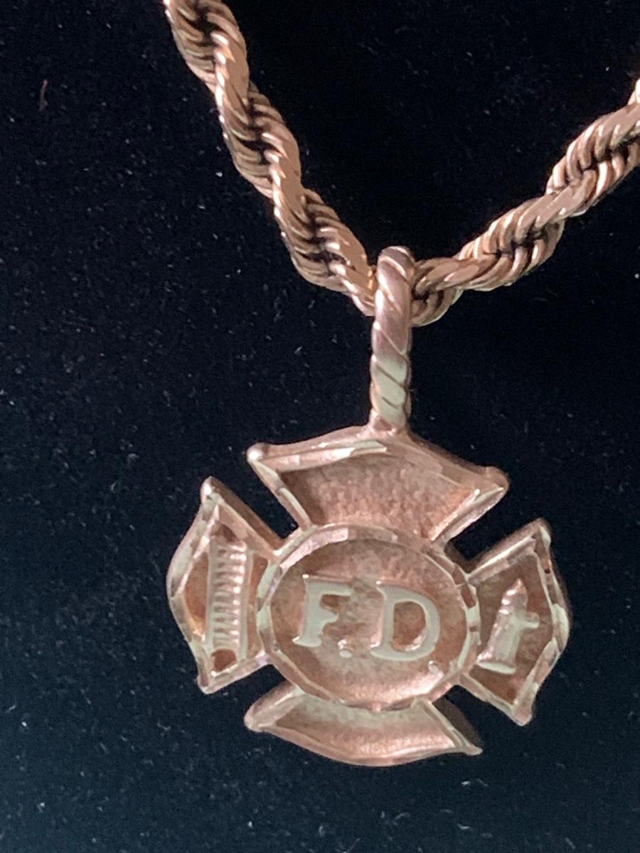 14k Yellow Gold Fire Department Pendant w/ 16” Chain - Total Weight 18.4 grams