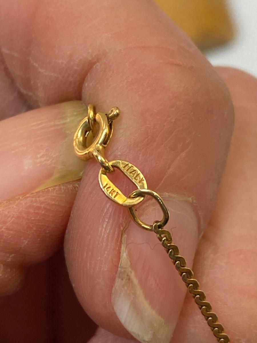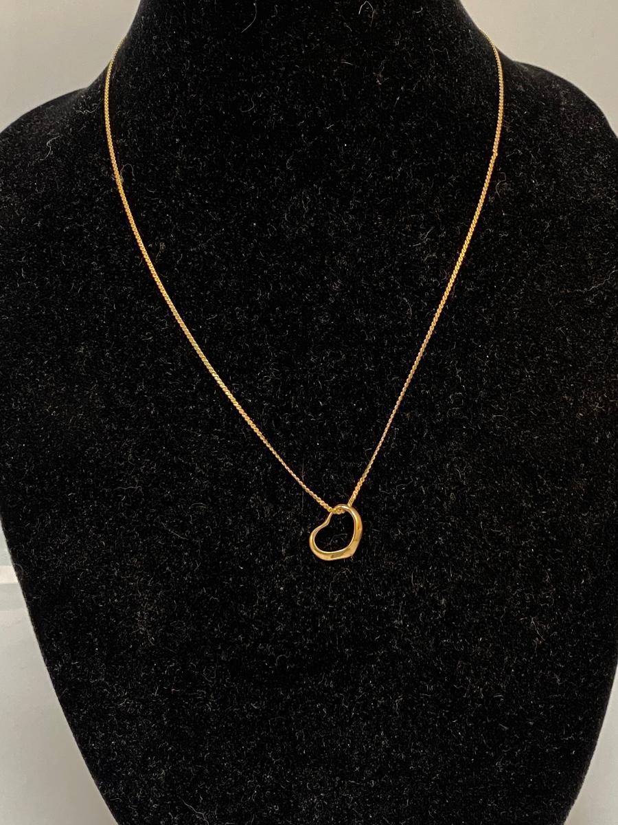 14k Yellow Gold Floating Heart Pendant Charm with Necklace. In good condition. 10" chain & 3.99g tw.