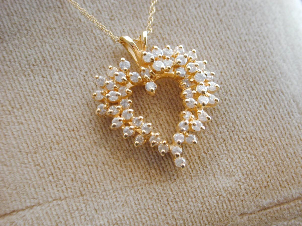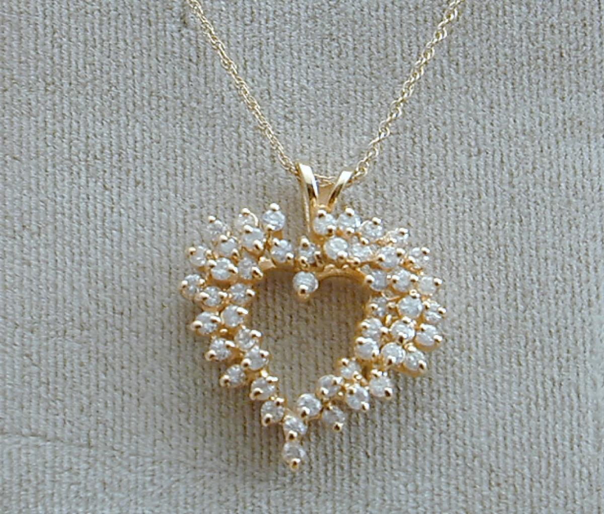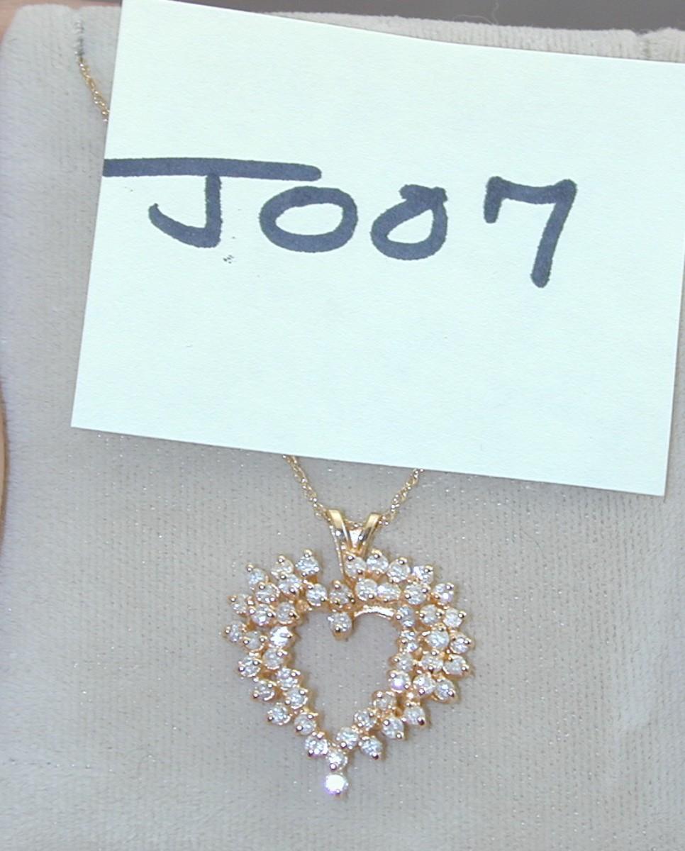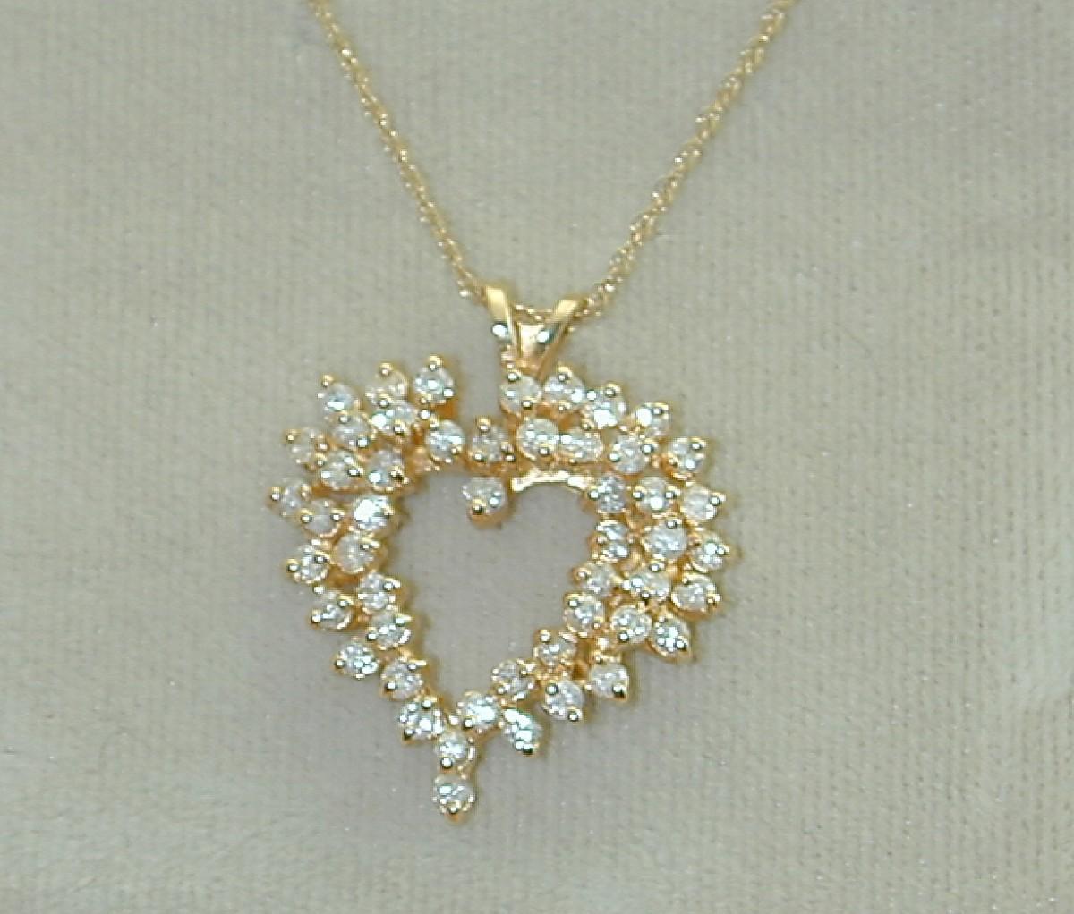 14k Yellow Gold Freeform Diamond Heart Necklace, 18" 4 Grams - J007