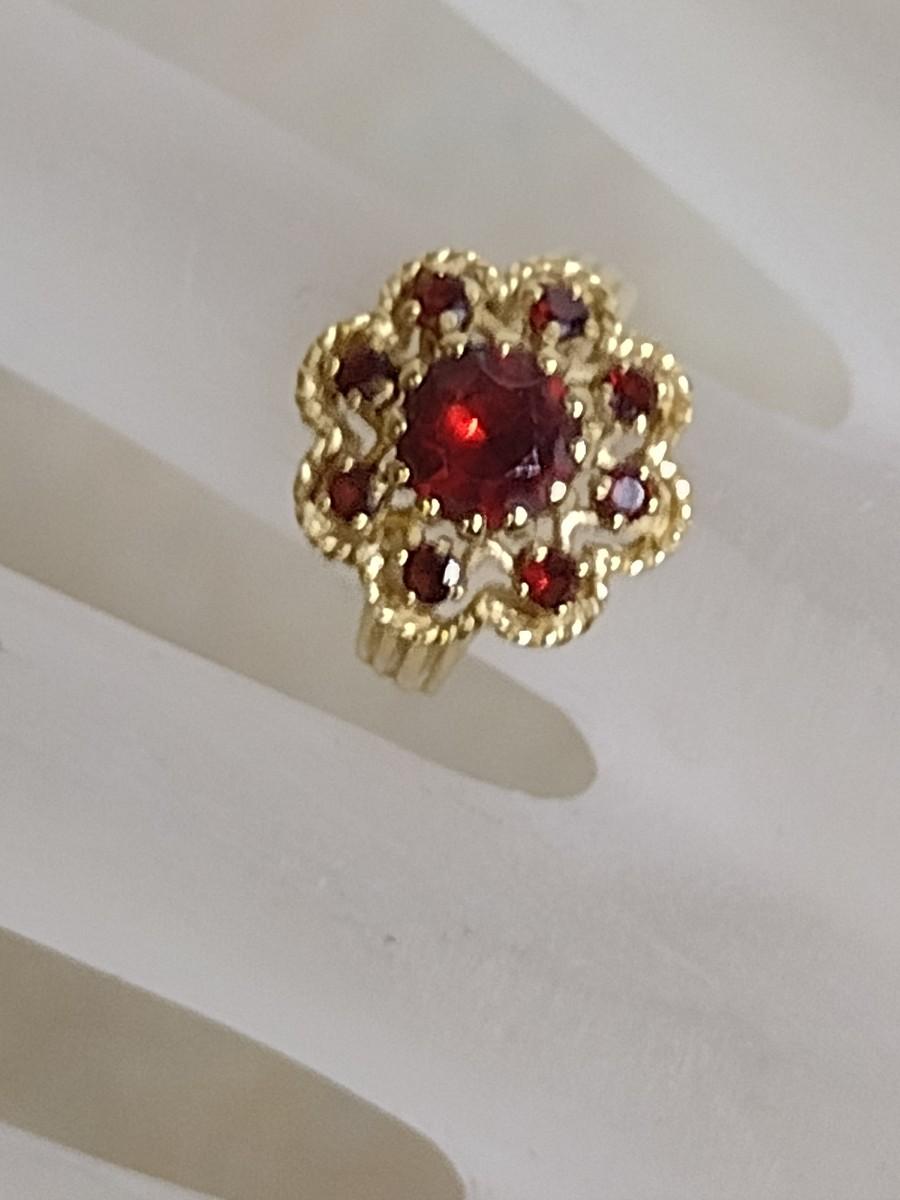 14K Yellow Gold Garnet Cluster Ring Size 6 Total Weight 4.5 grams (#12)