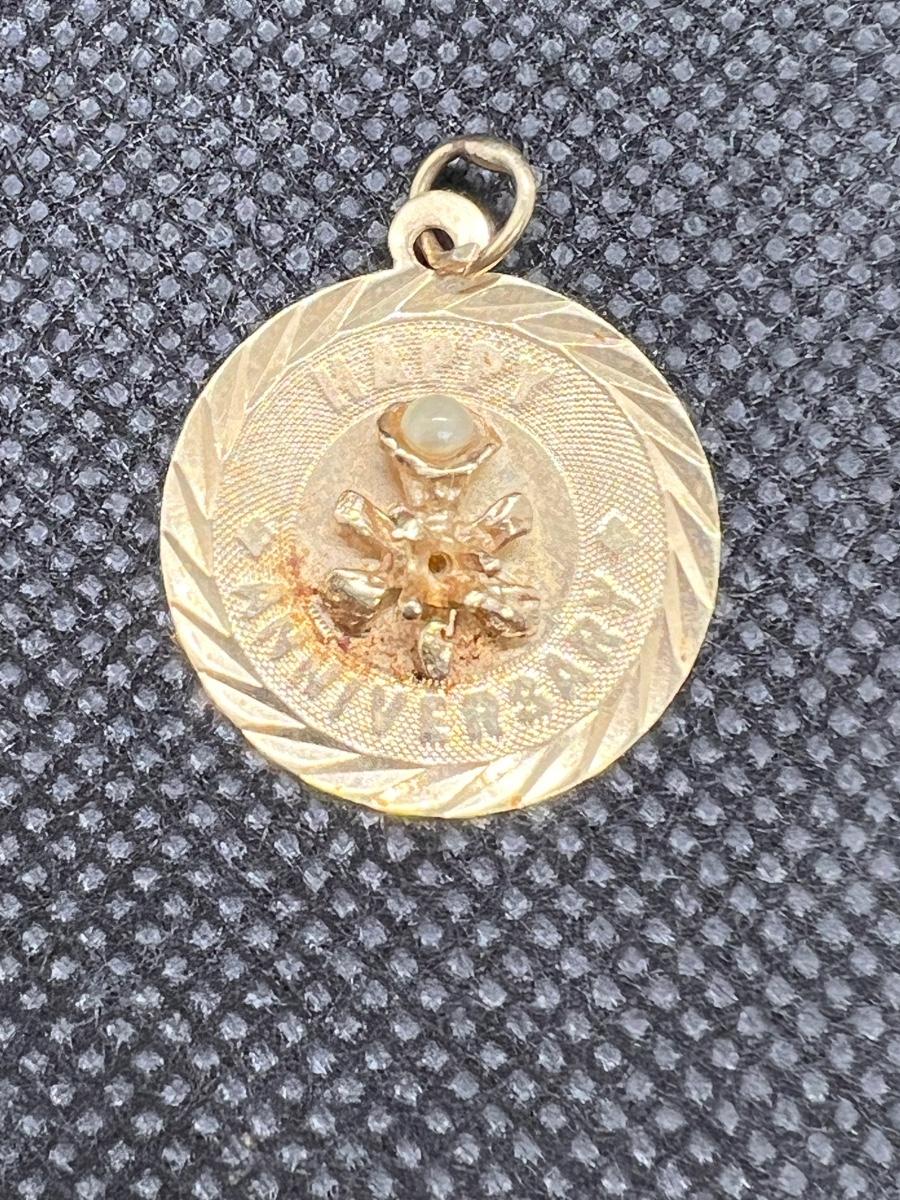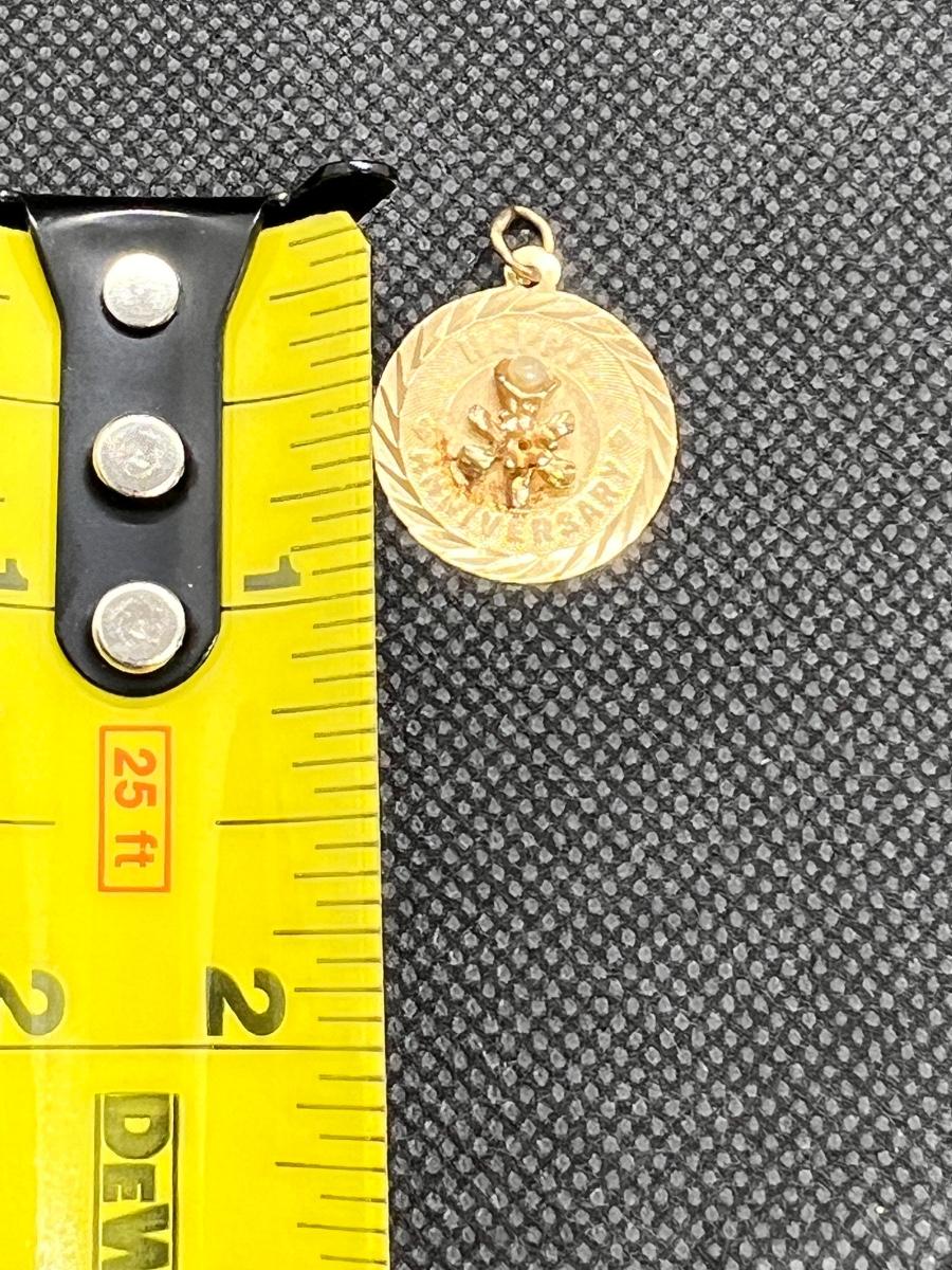 14KT Yellow Gold “ Happy Anniversary" Charm with Small Pearl