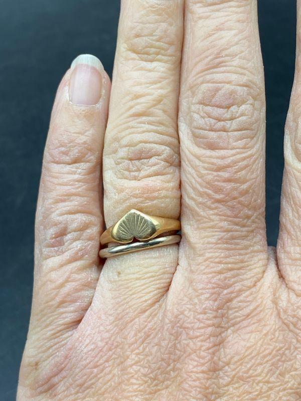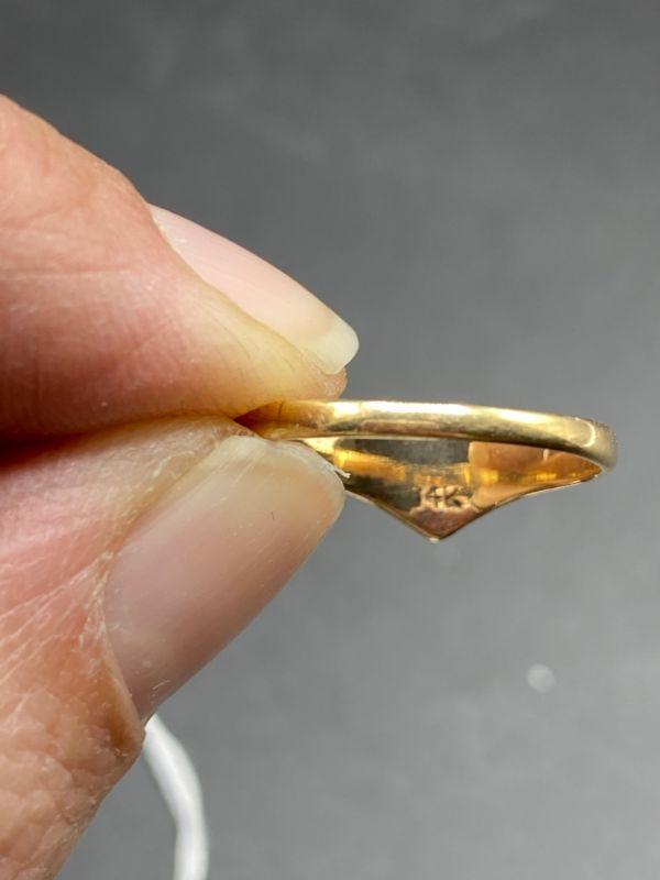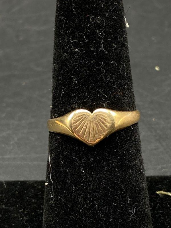 14k yellow gold heart shape promise ring. Fits like a size 6. Weighs 2.36g.