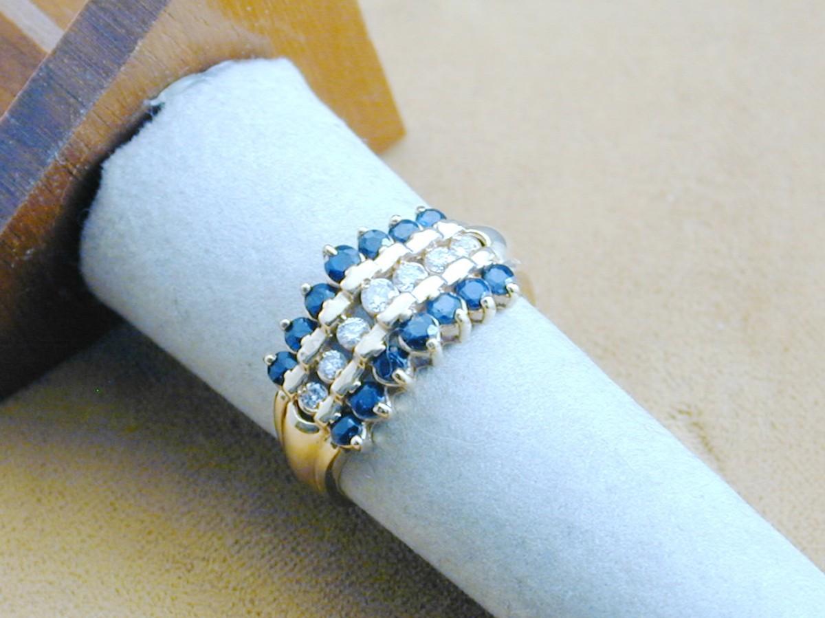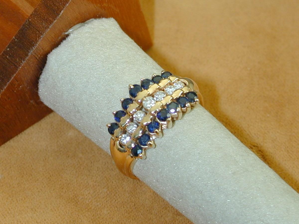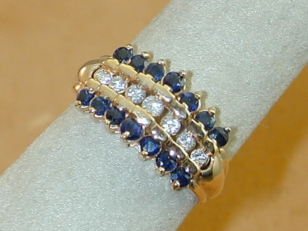 14k Yellow Gold Kay's Sapphire & Diamond 3 Row Waterfall Ring, Size 8.5, 5 Grams J005