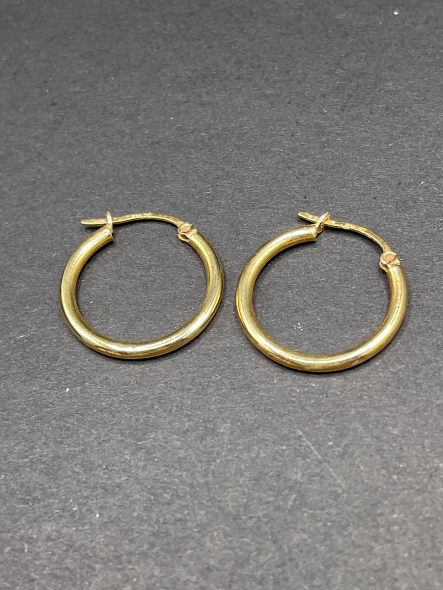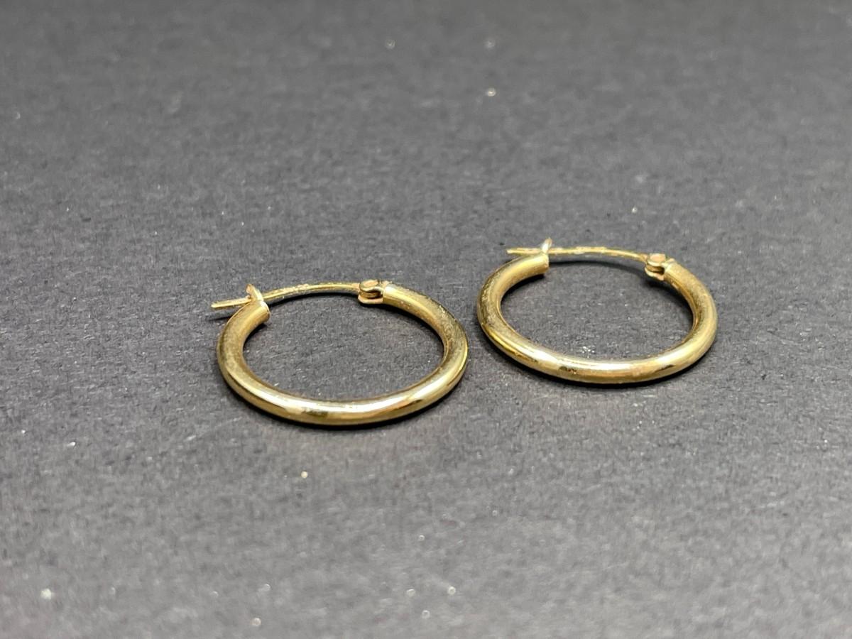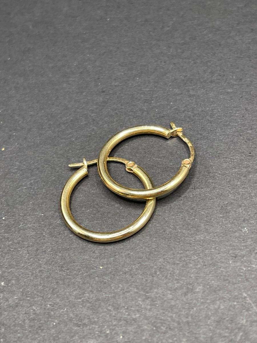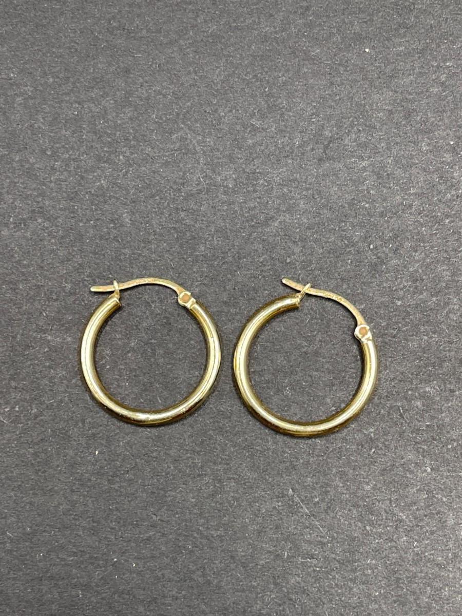 14K yellow gold, medium sized hoop earrings. .93 total grams.
