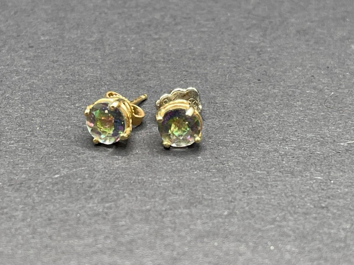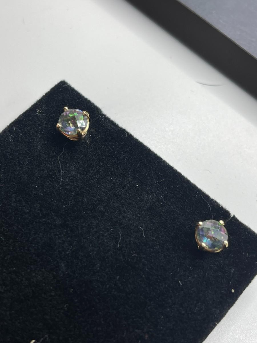 14k yellow gold mystic topaz stud earrings. 1.55 total grams. Good condition.
