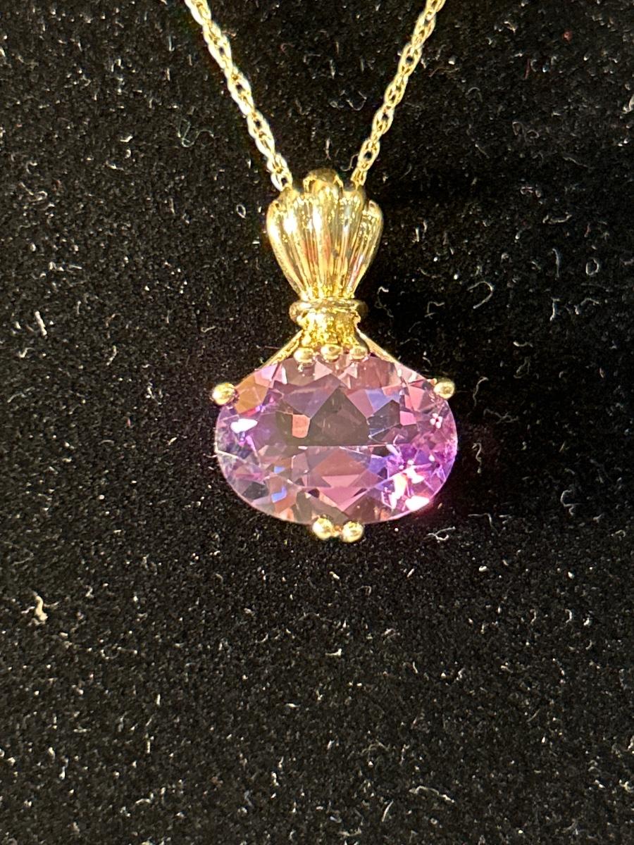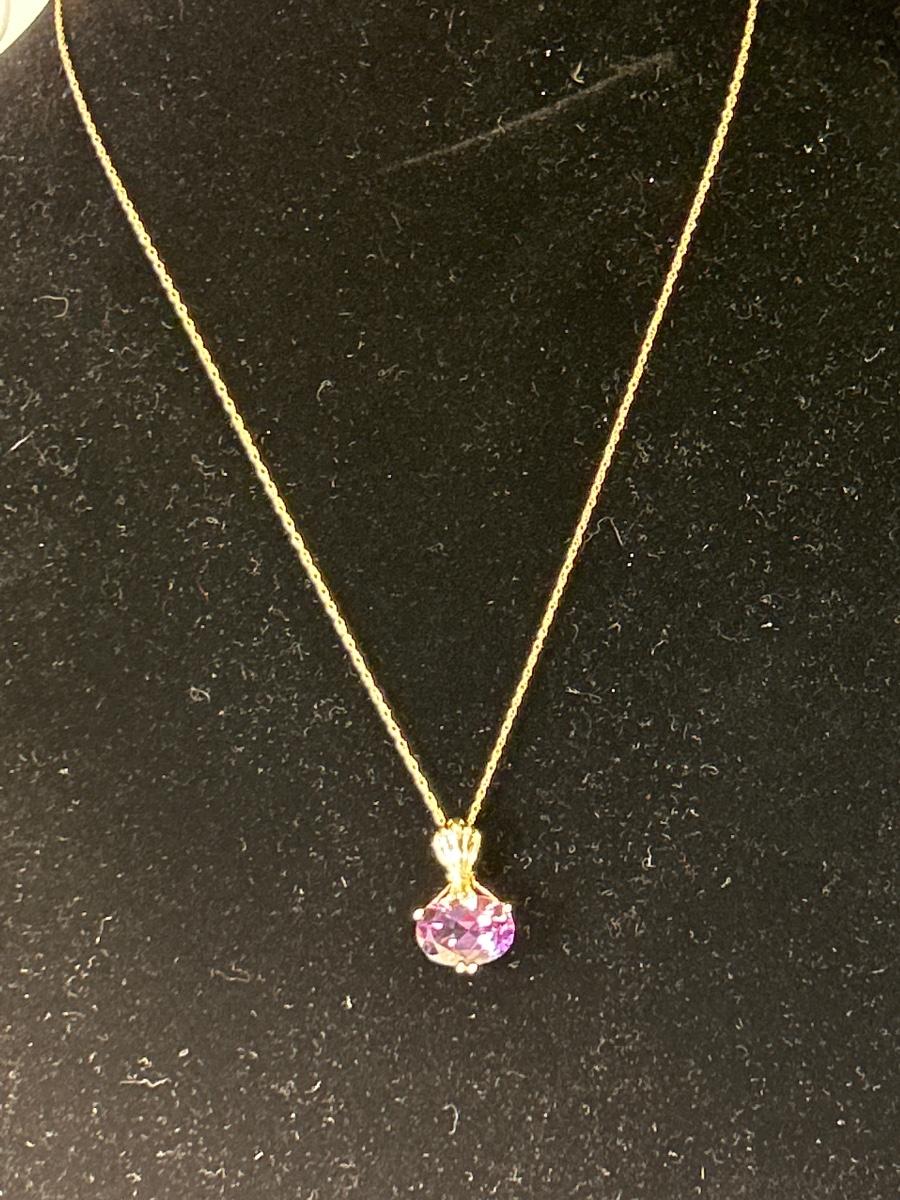 This one’s for the purple lovers! This looks like an Amethyst, chain is stamped 585 & 20” long.